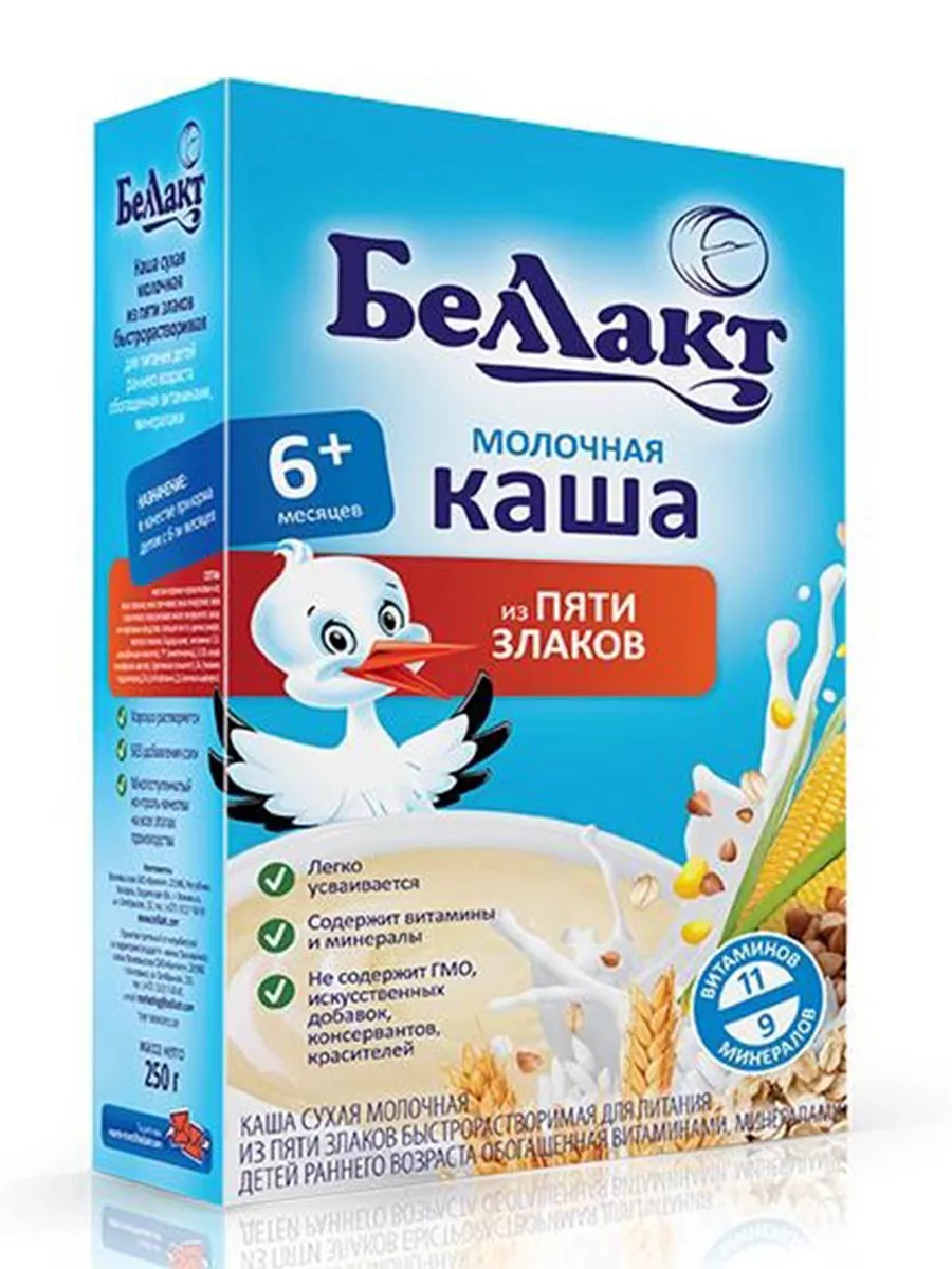 Беллакт Каша 5 Злаков с молоком и витаминами, 250г