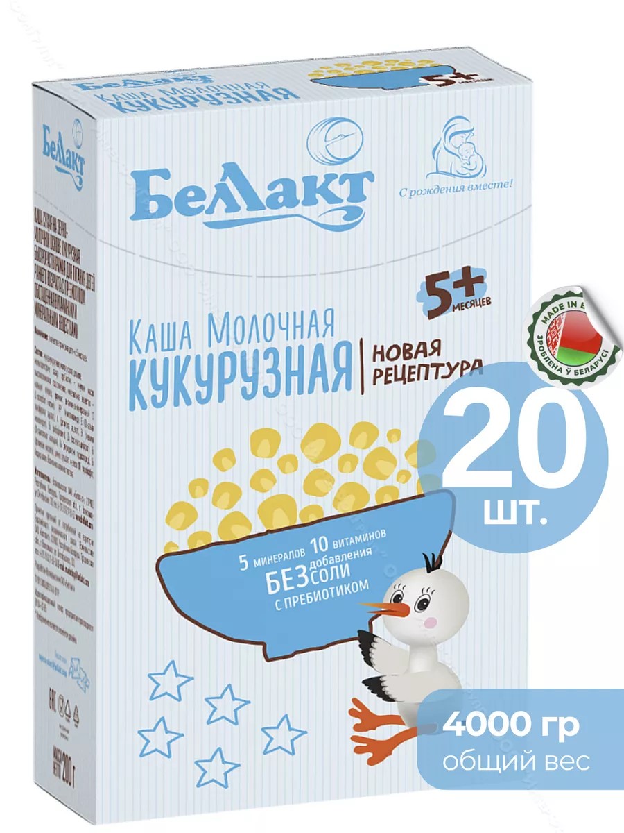 Каша кукурузная молочная - это детское питание класса премиум от флагманской белорусской компании Беллакт. Она изготовлена по инновационной технологии и предназначается для первого прикорма младенцев с 5+ месяцев. В ней нет соли, вредных добавок и присутствует пребиотик инулин, который улучшает защитную функцию и повышает иммунитет, положительно влияет на состав кишечных бактерий, эффективно стимулирует пищеварение. Зерновые культуры, такие как кукуруза - это живой источник минералов и микроэлементов, настоящий кладезь клетчатки и поставщик энергии. Сухая быстрорастворимая смесь выполнена исключительно на растительной основе и включает в себя только натуральные ингредиенты. Она подходит для витаминной диеты малышей и готовится обычным размешиванием в воде, молоке или соке. По мере роста ребенок должен своевременно получать сбалансированную еду для полноценного развития, поэтому надо стараться разнообразить его рацион. Производитель сделал свой злаковый продукт максимально полезным и хорошо усвояемым детьми до года. Насыщенный поливитаминный минеральный комплекс дает организму все нужные вещества (железо, цинк, калий, витамины А, С, Е, D3, РР, В1, В2, В5, В6, В9). Можно давать эту кашку грудным деткам во время ночного и дневного кормления, а старшим ребятишкам - готовить на завтрак перед выходом в садик.