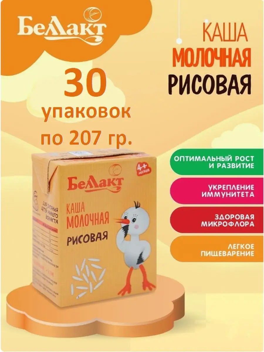Каша Беллакт молочная Рисовая (Tetra Brik Aseptic) рекомендована для введения в рацион в качестве дополнительного прикорма детям с 4 месяцев. Жидкие каши для детей - это новый формат детских продуктов. Данные каши готовить совсем не нужно. Жидкие каши выпускаются в упаковках Tetra Brik Aseptic с аппликатором соломка, их удобно брать с собой на прогулку, в гости, в дорогу. А температура хранения продукта до +25°С позволяет не беспокоиться о его сохранности. Идеальный вариант для горячей поры отпусков. Жидкие молочные каши Беллакт сочетают в себе пользу молока и энергию злаков. Можно наслаждаться приятными летними прогулками без вреда для режима питания – полезный и сытный перекус всегда под рукой. Каши Беллакт станут прекрасным помощником родителям в дороге и помогут познакомить малыша с чудесами окружающего мира. Молочная каша удовлетворяет растущие потребности малыша в энергии и пищевых веществах. Содержит злаки, которые обладают эффектом насыщения. 100% натуральные продукты - без добавления сухого молока, ГМО, искусственных красителей и консервантов. Состав Молоко нормализованное, вода, мука овсяная, сахар, крахмал. Возраст 4 мес. Вес, г 207 Упаковка Тетра-пак Производитель ОАО "Беллакт"Страна производства Беларусь Срок годности 12 мес. каша молочная каша молочная детская детская каша молочная каша молочная жидкая детское питание каша молочная гречневая каша молочная рисовая каша молочная овсяная каша молочная мульти-злаковая каша молочная каша питьевая. Детское питание Беллакт смесь в виде питьевых каш считается лучшим аналогом питьевых каш компаний Фрутоняня, Агуша, каша heinz.