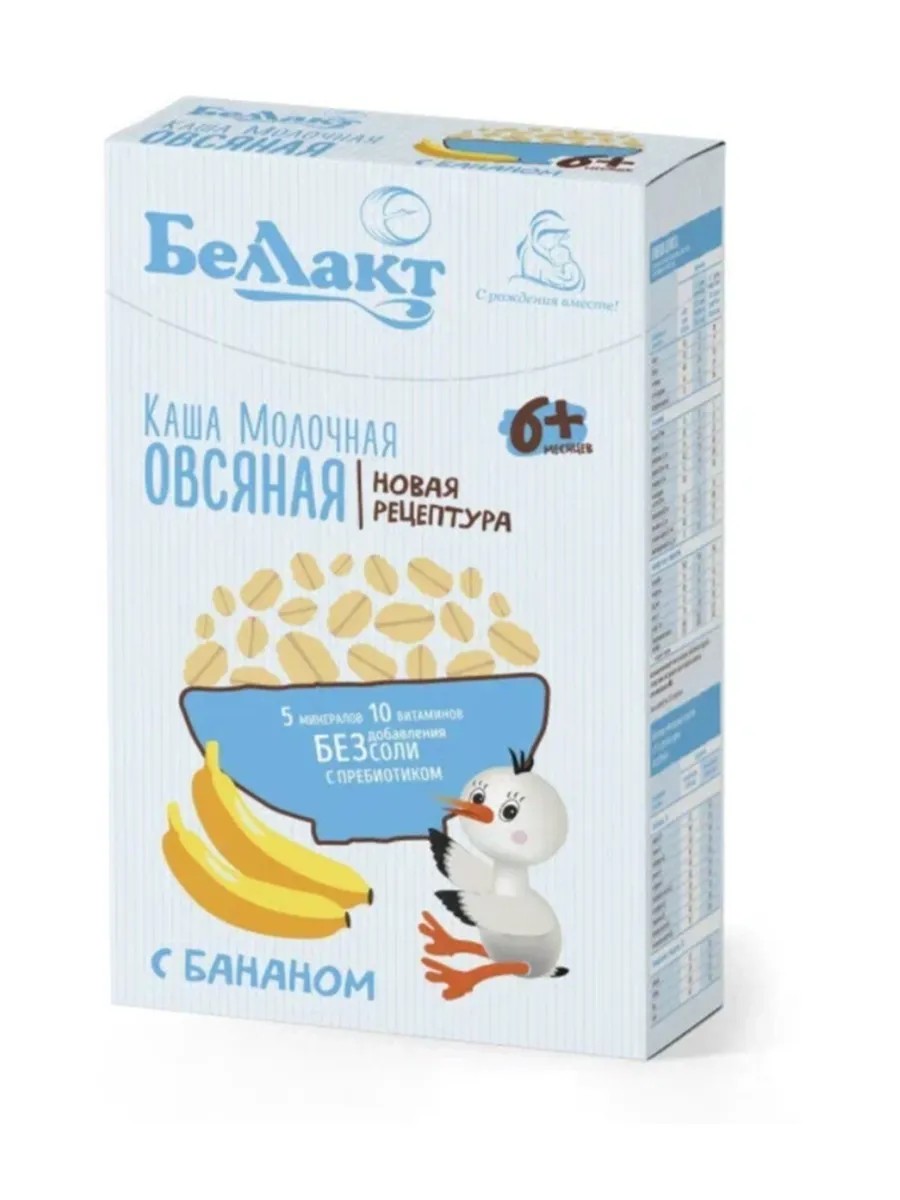 Ведущее белорусское предприятие Беллакт, выпускающее детское питание класса премиум, предлагает кашу овсяную с бананом на нормализованном коровьем молоке. Она полностью соответствует ГОСТам, изготовлена по новой технологии и предназначена для первого прикорма младенцев 6+ месяцев. В ней содержатся только фруктовые добавки нет соли, ГМО, красителей и консервантов. Она является важным источником белков, природных сахаров, крахмала и калия. Низкое содержание растительных волокон и органических кислот позволяет кормить ею малышей с самого раннего детства. По мере роста каждый ребенок нуждается в разнообразном рационе и сбалансированном меню со всеми микроэлементами для полноценного развития. Злаковые кашки с минералами - это максимально полезная и хорошо усваиваемая пища для грудничков. Быстрорастворимая сухая смесь выполнена на натуральной основе и включает в себя пребиотик инулин, положительно влияющий на состав кишечных бактерий, стимулирующий пищеварение и усиливающий защитную функцию организма. В зерно-молочном продукте присутствует богатый минеральный и витаминный комплекс, включающий в себя йод, кальций, железо, селен, витамины А, С, Е, В1, В2, РР. Такая еда с вкусным наполнителем понравится младенцам, которым ее можно давать как во время дневного, так и ночного кормления из бутылочки. А ребятки детсадовского возраста и младшие школьники с удовольствием полакомятся ею на завтрак перед выходом в садик или школу.