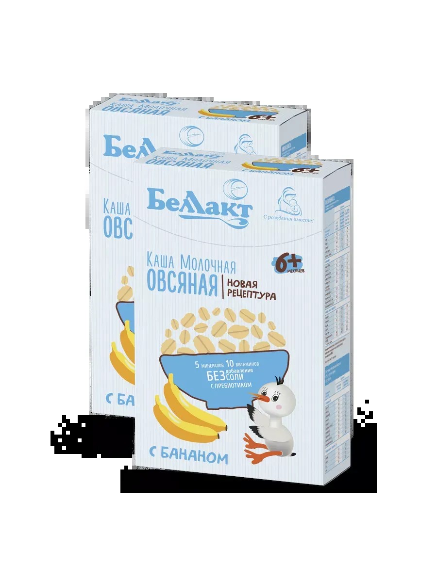 Bellakt, a leading Belarusian company producing premium baby food, offers oatmeal with banana made with standardized cow's milk. It fully complies with GOST standards, is made using a new technology, and is intended for the first feeding of infants 6+ months. It contains only fruit additives and is free of salt, GMOs, colorings, and preservatives. It is an important source of protein, natural sugars, starch, and potassium. Its low fiber and organic acid content makes it suitable for feeding to babies from early infancy. As they grow, every child needs a varied diet and a balanced menu with all the necessary micronutrients for proper development. Cereal porridges with minerals are the most nutritious and easily digestible food for infants. This instant dry mixture is made from natural ingredients and includes the prebiotic inulin, which has a positive effect on the composition of intestinal bacteria, stimulates digestion, and strengthens the body's defenses. This grain-and-milk product contains a rich mineral and vitamin complex, including iodine, calcium, iron, selenium, and vitamins A, C, E, B1, B2, and PP. This tasty filling will appeal to infants, who can enjoy it during both daytime and nighttime bottle feedings. And preschool-aged children and younger schoolchildren will enjoy it for breakfast before heading to daycare or school.