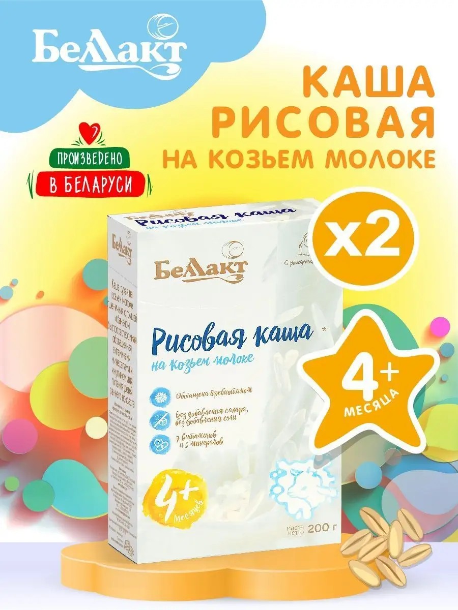 Беллакт Каша на козьем молоке рисовая 200гр х 2 шт