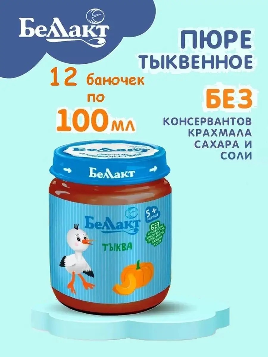 Детские пюре овощные представлены различными группами без добавления крахмала, сахара, соли, консервантов и других пищевых добавок. Овощные пюре Беллакт приготовлены только из 100% овощей, богатых витаминно-минеральным комплексом. Это вкусное а главное полезное пюре, которое полезно детям любого возраста! Овощные пюре обеспечивают организм ребенка пищевыми волокнами, разнообразными углеводами и минеральными веществами. Овощное пюре из тыквы рекомендуется детям с 5 месяцев, начиная с 0,5 чайной ложки в день, увеличивая к году до 100г в день. До вскрытия банки хранить при температуре от - до 25 градусов Цельсия и относительной влажности воздуха не более 75%. После вскрытия банки хранить при температуре от 0 до 6 градусов Цельсия не более суток. Вскрывать непосредственно перед употреблением. При отсутствии хлопка в момент вскрытия в пищу не употреблять. Перед употреблением взбалтывать!
