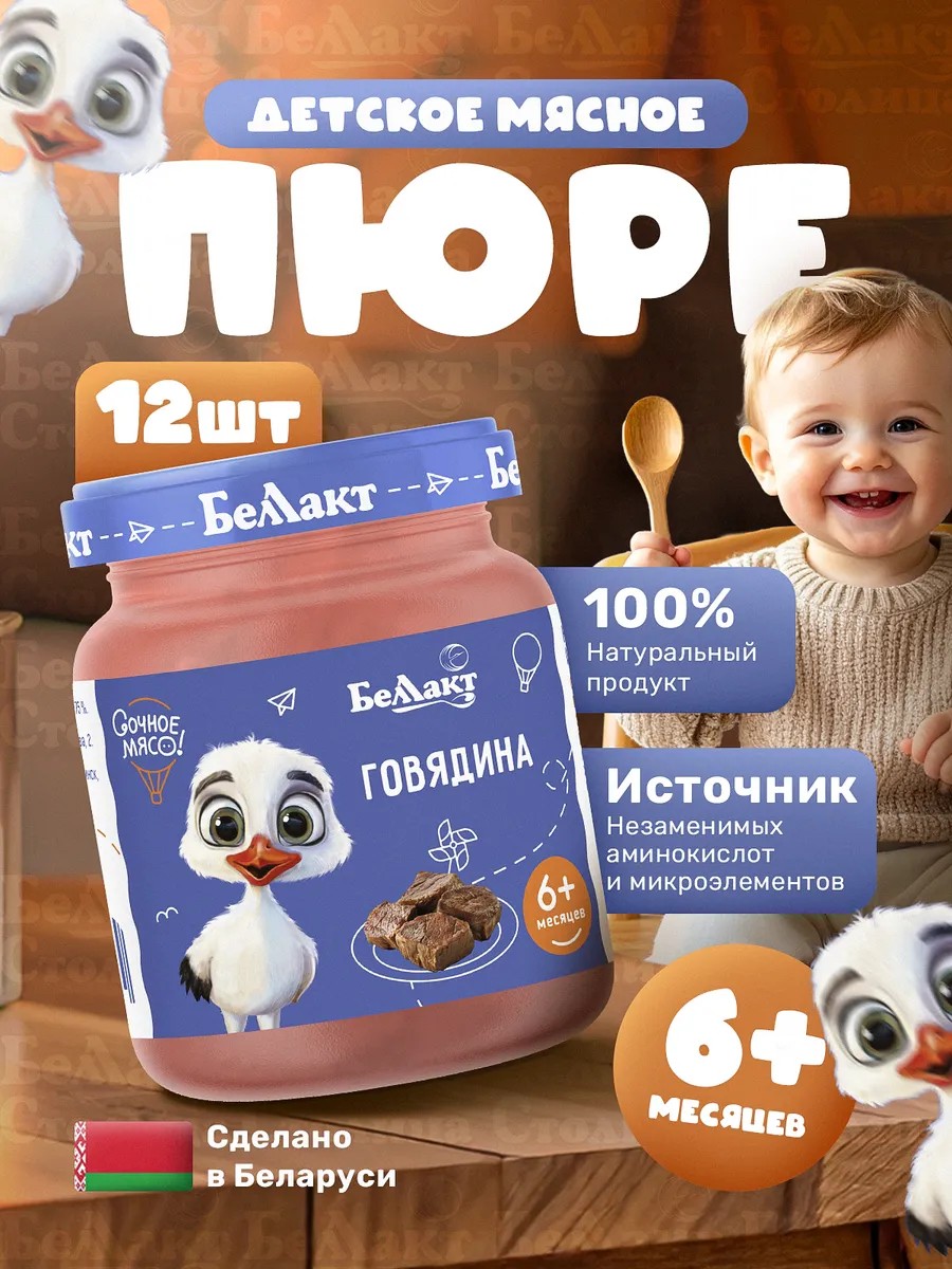 | Полное наименование товара | Консервы Беллакт мясные "Пюре из говядины" гомогенизированные. Для питания детей раннего возраста с 6 месяцев, 12 штук по 95 грамм |