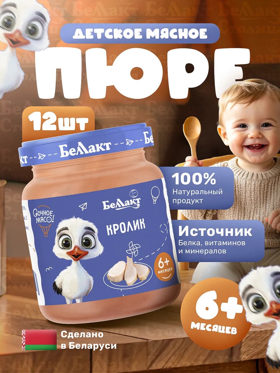 Беллакт Пюре детское мясное Кролик 95г х 12шт, с 6 месяцев