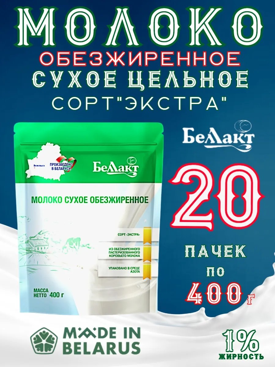 | Комплектация | 20 упаковок сухого обезжиренного молока по 400 грамм |