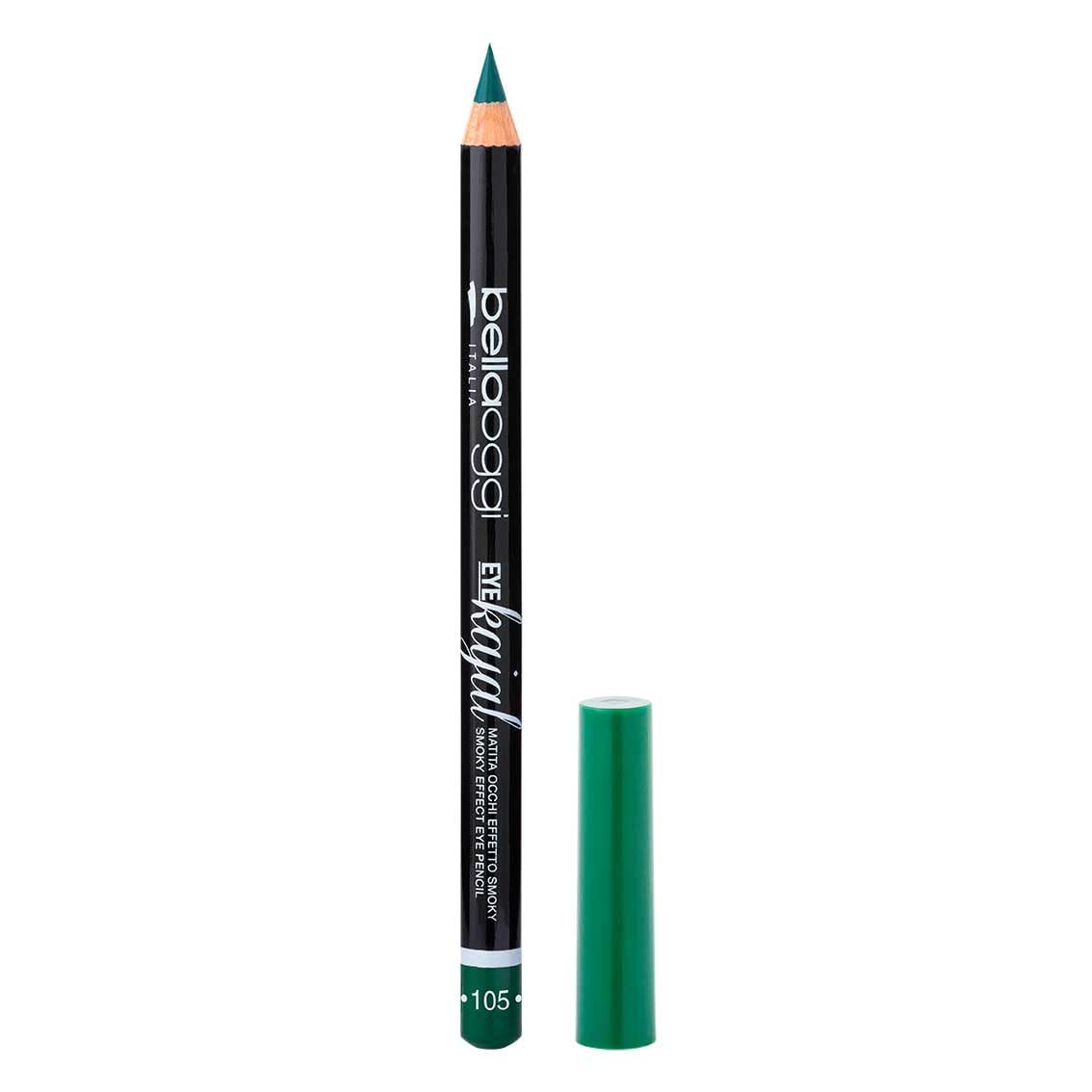 Intense color for shadow and light games. The soft and fondant formula ensures easy use, even on the outer tip for a smoky eye. The texture has an intense and immediate color release. The eye makeup is enhanced by an even and smudge-free stretch. The view is in the foreground.eyeliner.Bellaoggi Eye Kajal oogpotlood nr. 105 Green Kajal Intense kleur voor schaduw- en lichtgames. De zachte en fondant-formule zorgt voor een eenvoudig gebruik, ook op de buitenste punt voor een smoky eye. De textuur heeft een intense en onmiddellijke kleurafgifte. De oogmake-up wordt opgewaardeerd door een gelijkmatige en veegvrije strek. Het zicht staat op de voorgrond.eyeliner.