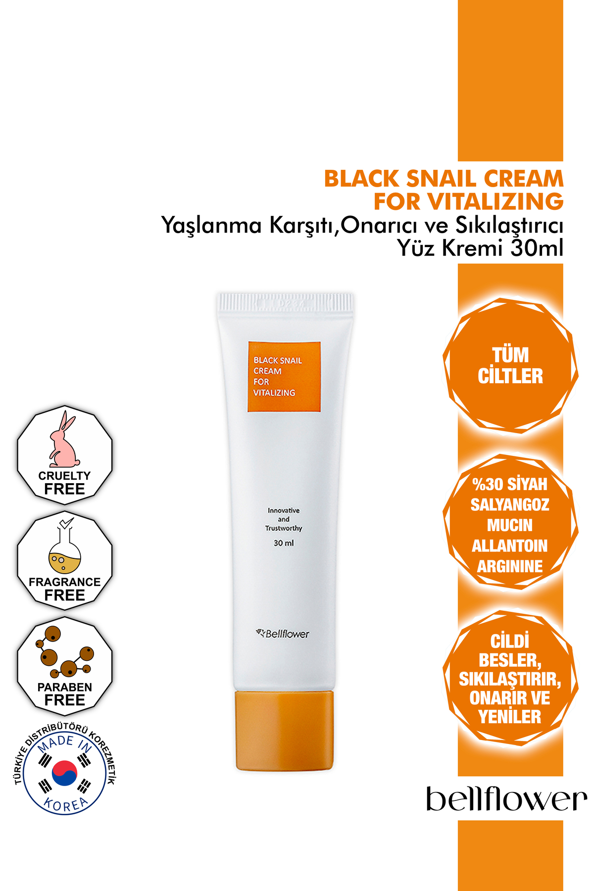 Bellflower Siyah Salyangoz kremi cildi mükemmel bir sekilde besler, cildin elastikiyetini arttirir, cilt bariyerini onarir, cildi yeniler ve nemlendirir ve sikilastirir.