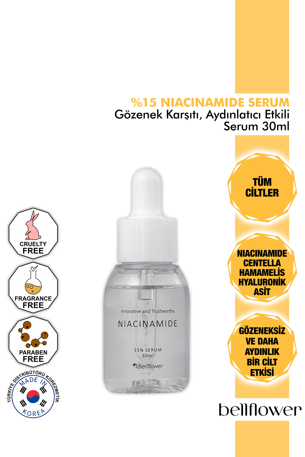 BELLFLOWER 15 NIACINAMIDE VE CENTELLA IÇEREN GÖZENEK KARSITI AYDINLATICI ETKILI SERUM 30ml
