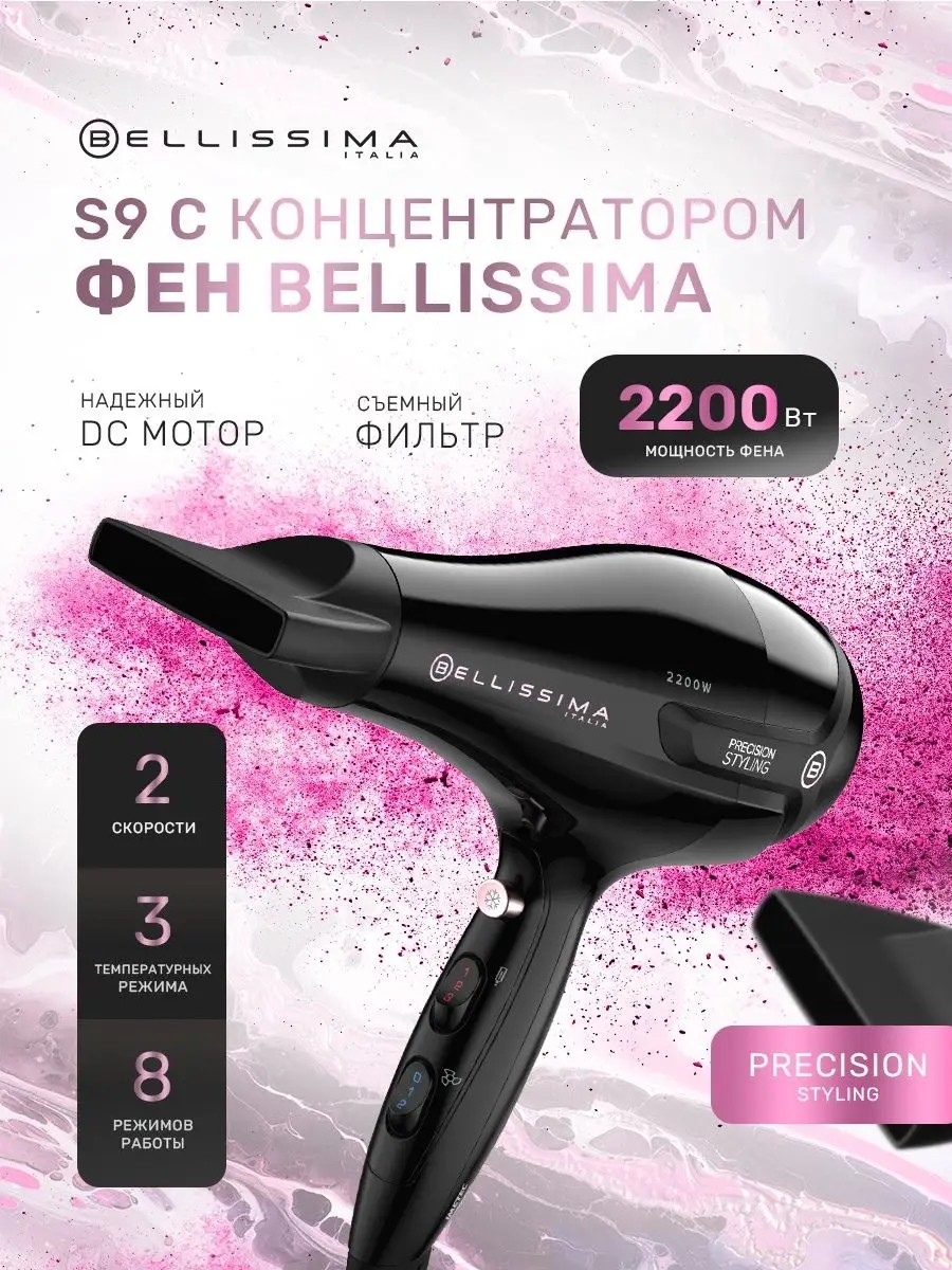 Bellissima Фен для волос профессиональный мощный S9 с концентратором