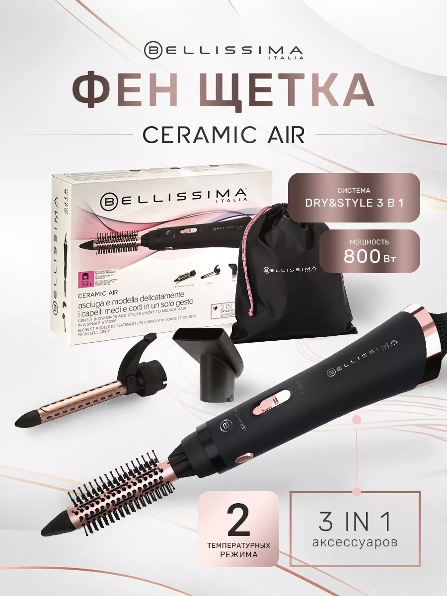 Bellissima. Фен щетка для волос с насадками Ceramic AIR 3 в 1