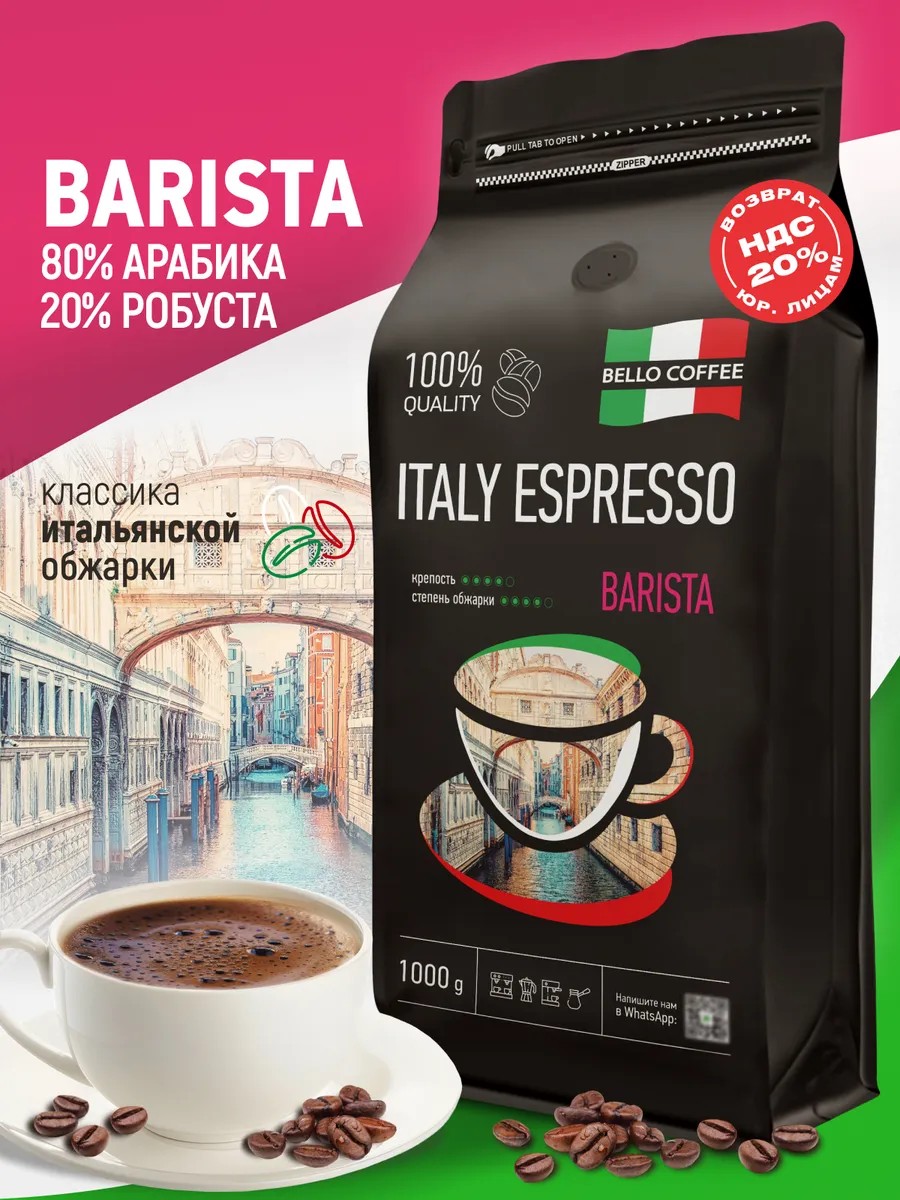Белло кофе Italy Espresso Barista (Эспрессо Бариста)— качественный кофейный бленд с оптимальным соотношением арабики и робусты (80% Арабика, 20% Робуста).