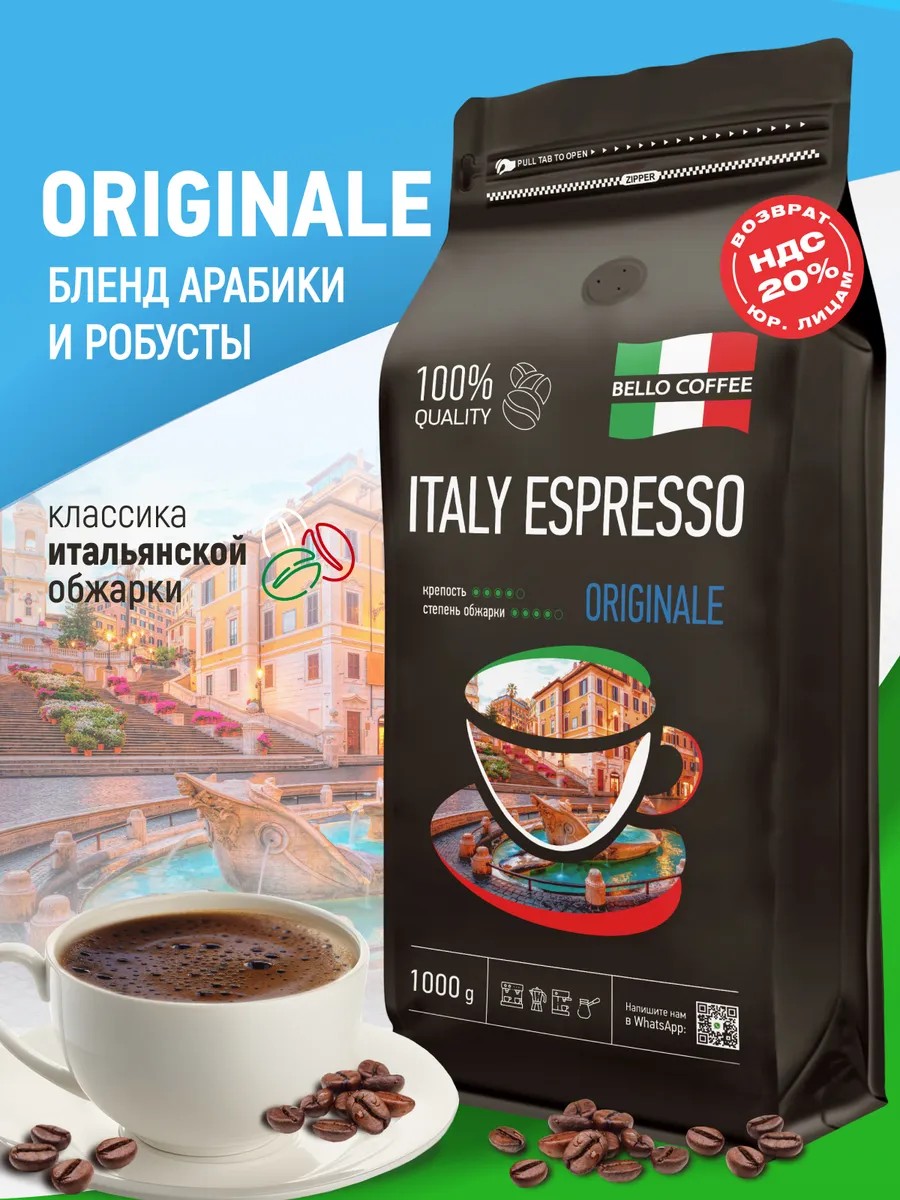 BELLO COFFEE Кофе в зернах 1 кг арабика робуста Italy Espresso Originale
