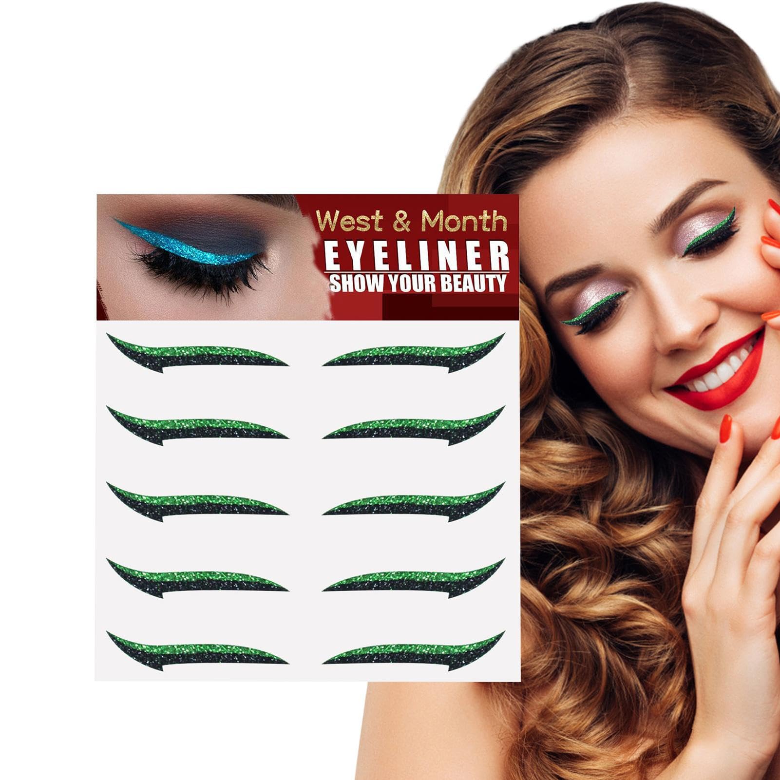 bellv Set of 5 pairs of instant self-adhesive eyeliner stencils with glitter - Shiny effect - For women and girls Bellv