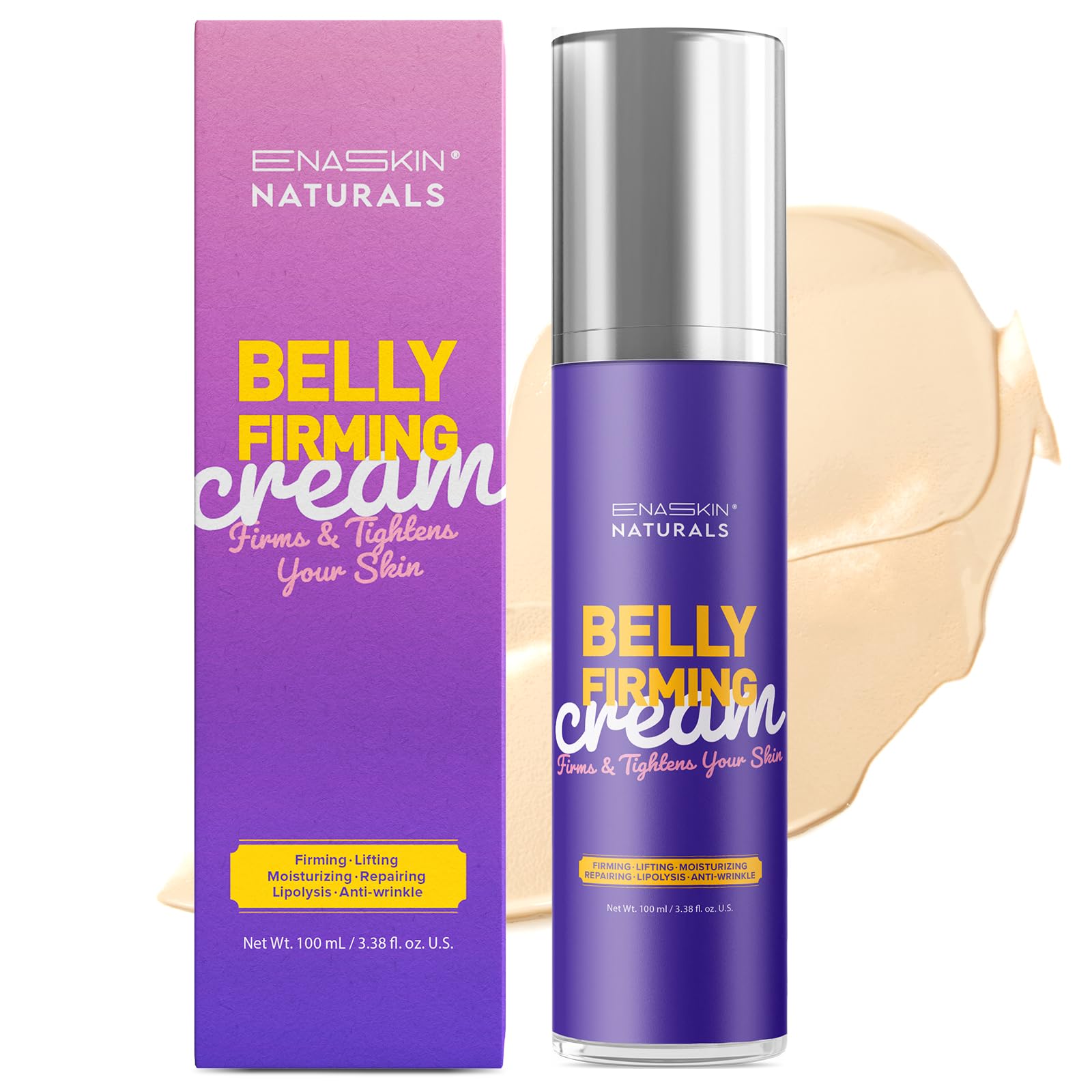 LIGHTLY SCENTED, FAST-ABSORBING FORMULA Our body tightening cream for women features a clean, fresh scent and a non-greasy finish—ideal for use as a fat firming cream, belly cream to tighten loose skin, or firming cream for cellulite. Visible results with consistent use. DAILY BODY FIRMING TIGHTENING ROUTINE Use this tummy firming and tightening cream morning and night. Massage into clean, dry skin in circular motions to promote a flat belly, improve tone, and support collagen health. A must-have skin toning and firming cream for thighs and stomach. NOURISHING INGREDIENTS FOR SMOOTHER, PLUMPER SKIN Infused with Vanillyl Butyl Ether, Vitamin E, Jojoba Oil, and Sodium Hyaluronate, this firming belly skin tightening cream deeply hydrates and energizes your skin—perfect as a skin tightening cream for body loose skin and thigh firming and tightening cream. POWERFUL SKIN TIGHTENING FOR STOMACH POSTPARTUM BELLY Perfect for use as a skin tightening cream for stretch marks or a post pregnancy belly firming cream, our formula helps improve elasticity and tone. It's your go-to stomach tightening cream for postpartum recovery and skin firming after weight loss. MULTI-TARGETED CELLULITE CREAM FOR STOMACH, THIGHS ARMS This anti-cellulite body firming cream is designed to visibly reduce the look of cellulite and stretch marks on problem areas like the stomach, thighs, hips, and arms. Ideal as a tummy control cream and cellulite cream, it supports smoother, firmer skin with every use.