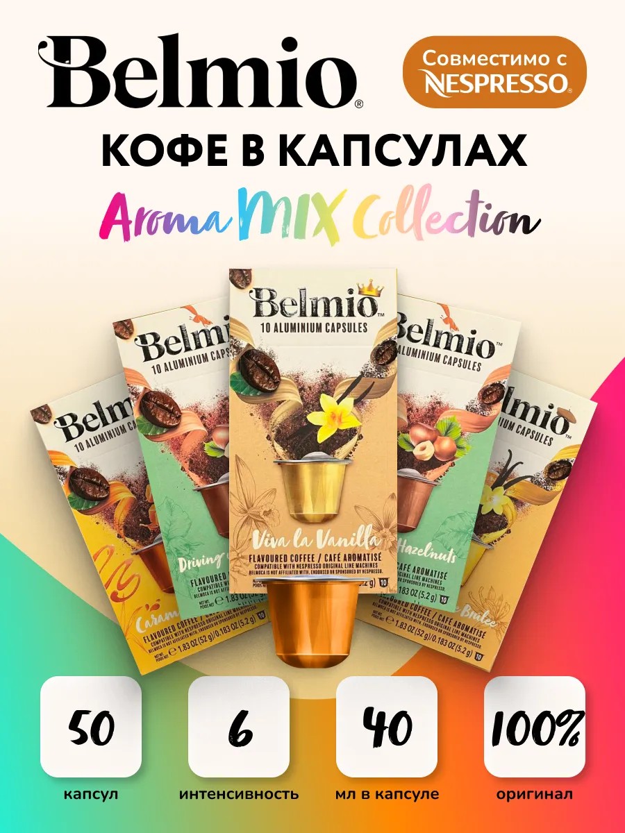 Откройте для себя мир изысканных вкусов с ассорти капсул Belmio! Каждая капсула — это не просто кофе, а настоящая гастрономическая радость, в которой сочетаются лучшие традиции и современные технологии.