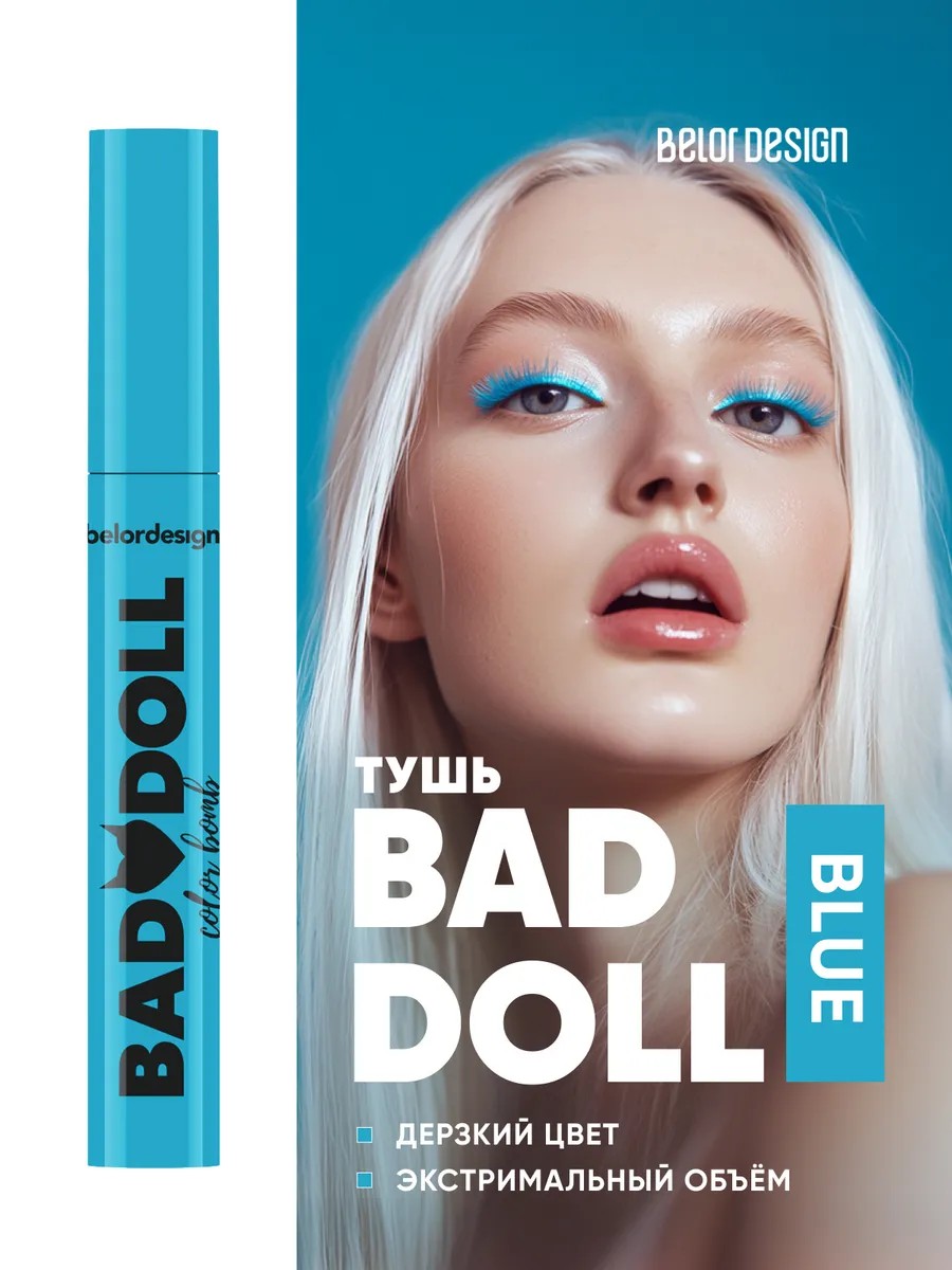 Belor Design Голубая объемная тушь для ресниц Bad Doll