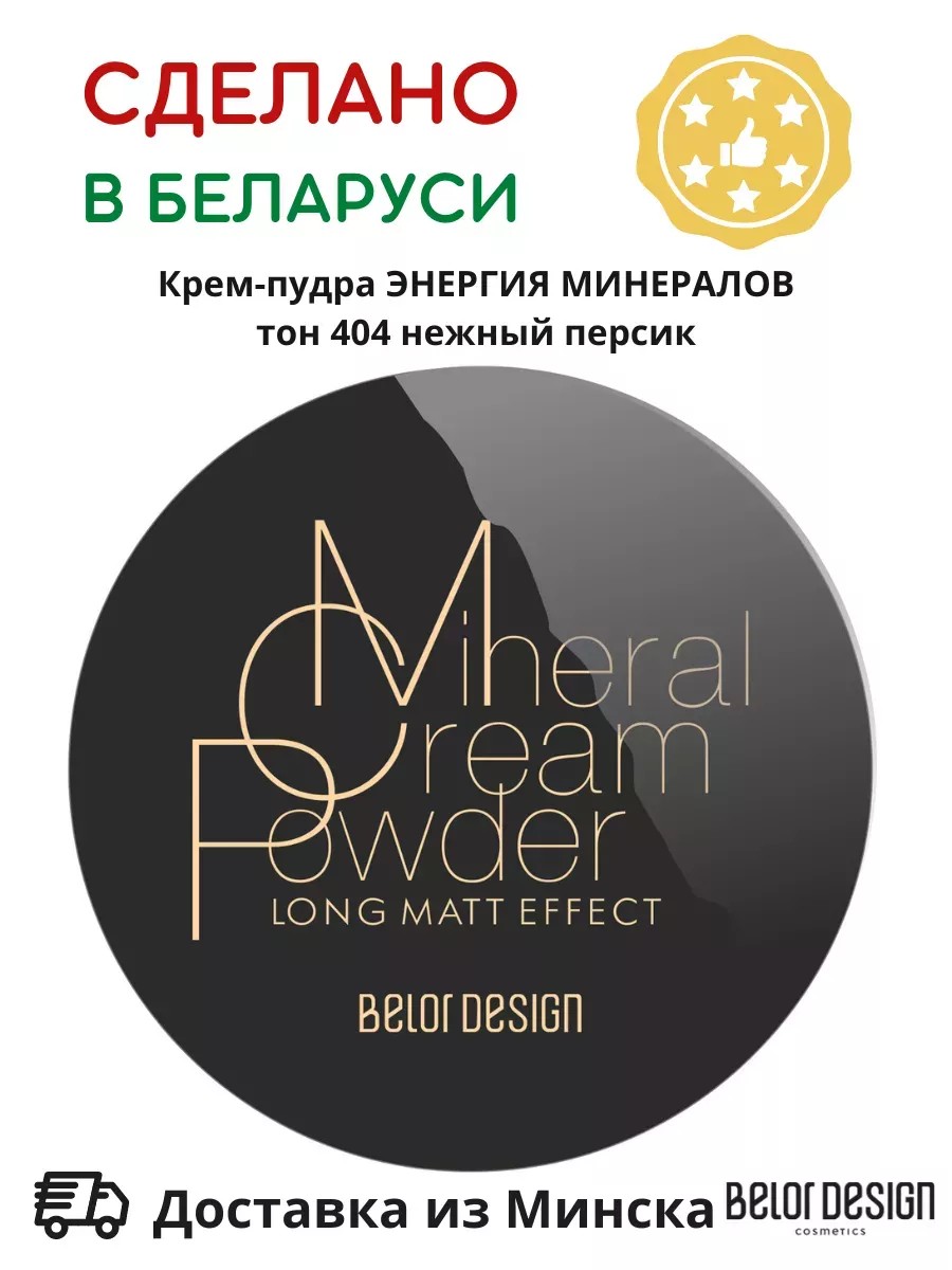Крем - пудра для лица Энергия Минералов от белорусского бренда декоративной косметики Belor Design (Белор Дизайн). Компактная пудра с цветом, финишная, для выравнивания рельефа, фиксации макияжа и продления его красоты и стойкости. Эффективно матирует и прекрасно выравнивает цвет лица. Мягкая, шелковистая текстура обеспечивает легкое и гладкое нанесение. Не сушит, сохраняет свежесть и упругость кожи, содержит УФ - фильтр. Пудра подходит для загорелой и светлой кожи, сочетается с любым оттенком тонального крема, подходит для любого подтона кожи и любого цветотипа внешности. Действие минералов в составе пудры оказывает антибактериальное и успокаивающее действие в течение дня. Компактный формат: маленькая упаковка с зеркалом, удобно брать с собой. Два способа применения: компактная пудра - при нанесении сухим спонжем выравнивает цвет лица и придает коже бархатистый вид. Тональный крем - при нанесении влажным спонжем скрывает мелкие недостатки кожи и морщинки. Продукт подходит как начинающим пользователям, так и профессиональным визажистам.