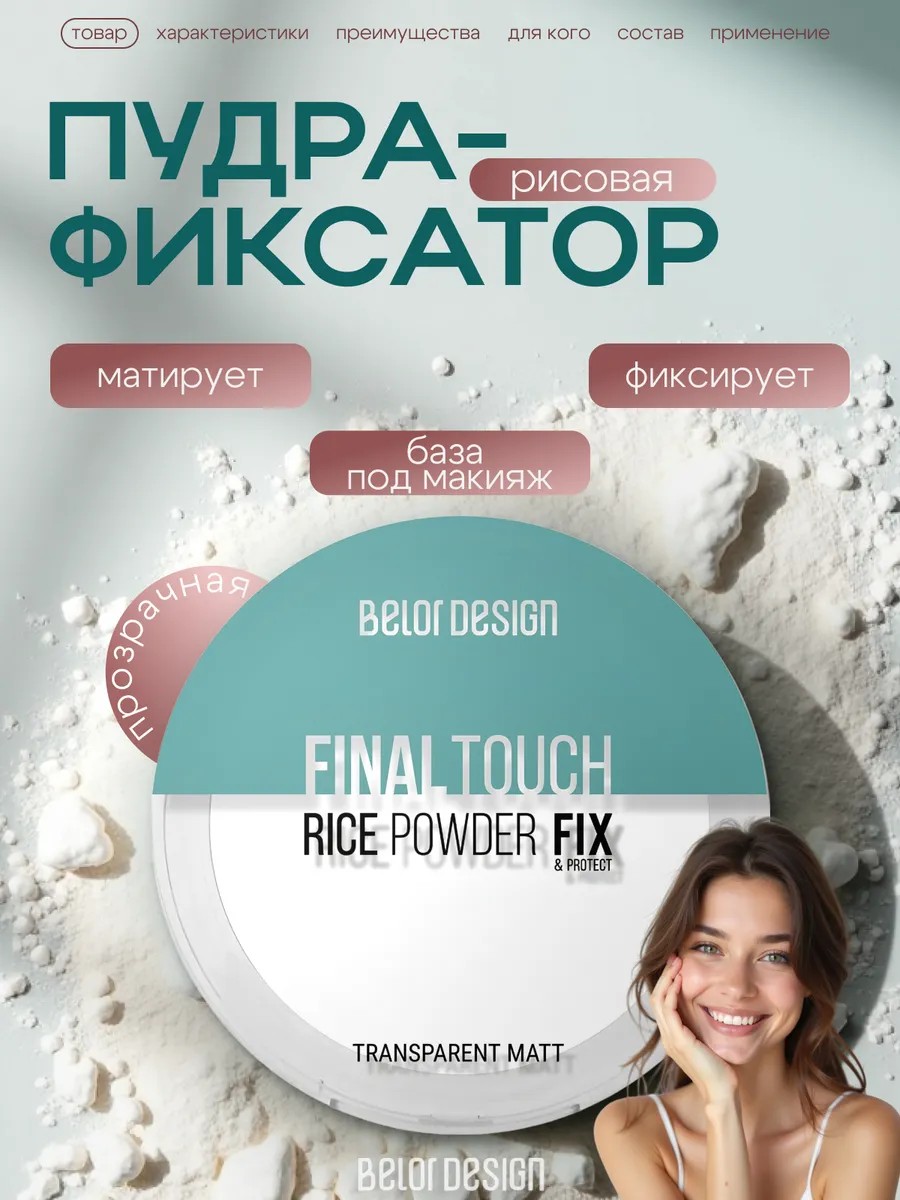 | Полное наименование товара | Рисовая пудра-фиксатор BELOR Design Final touch |
