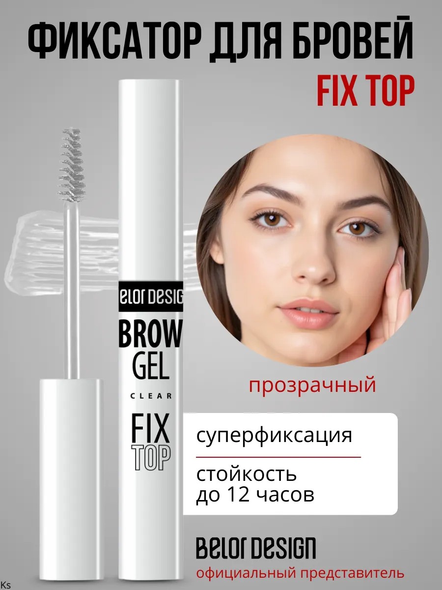 Гель Фиксатор для бровей суперфиксация Fixtop. Бесцветная гелевая текстура геля для бровей фиксирует, повторяя ваш уникальный оттенок. Современные полимеры, в составе фиксирующего геля обеспечивают комфортное нанесение без ощущения стягивания, поддерживают необходимый уровень увлажнения и дополнительно защищают от внешних воздействий. Фиксирующий бесцветный гель быстро высыхает, сохраняя естественный вид бровей. Бесцветный гель для укладки бровей не оставляет белый налет, не склеивает, не создает эффекта «мокрых» волосков. Прозрачный фиксирующий гель для бровей уложит каждый непослушный волосок на весь день. Густая нейлоновая щеточка фиксирующего белорусского геля для бровей равномерно распределяет, тщательно прочесывает, придает желаемую форму. Гель для бровей не образует пленку на коже. Фиксирующий гель как нельзя лучше подходит обладательницам густых бровей, волоски в которых не всегда готовы оставаться в нужном направлении. Гель фиксатор подарит бровям аккуратный, естественный ухоженный вид. Фиксатор для бровей - прекрасное средство для ежедневного макияжа. Декоративная косметика белорусского бренда Belor Design соответствует международному стандарту качества GMP. Фиксирующий гель для бровей станет отличным подарком на новый год, Рождество, день рождения, 8 марта, для мамы, подруги, любимой, коллеги как самостоятельное средство, так и в составе бьюти бокса, набора декоративной косметики.