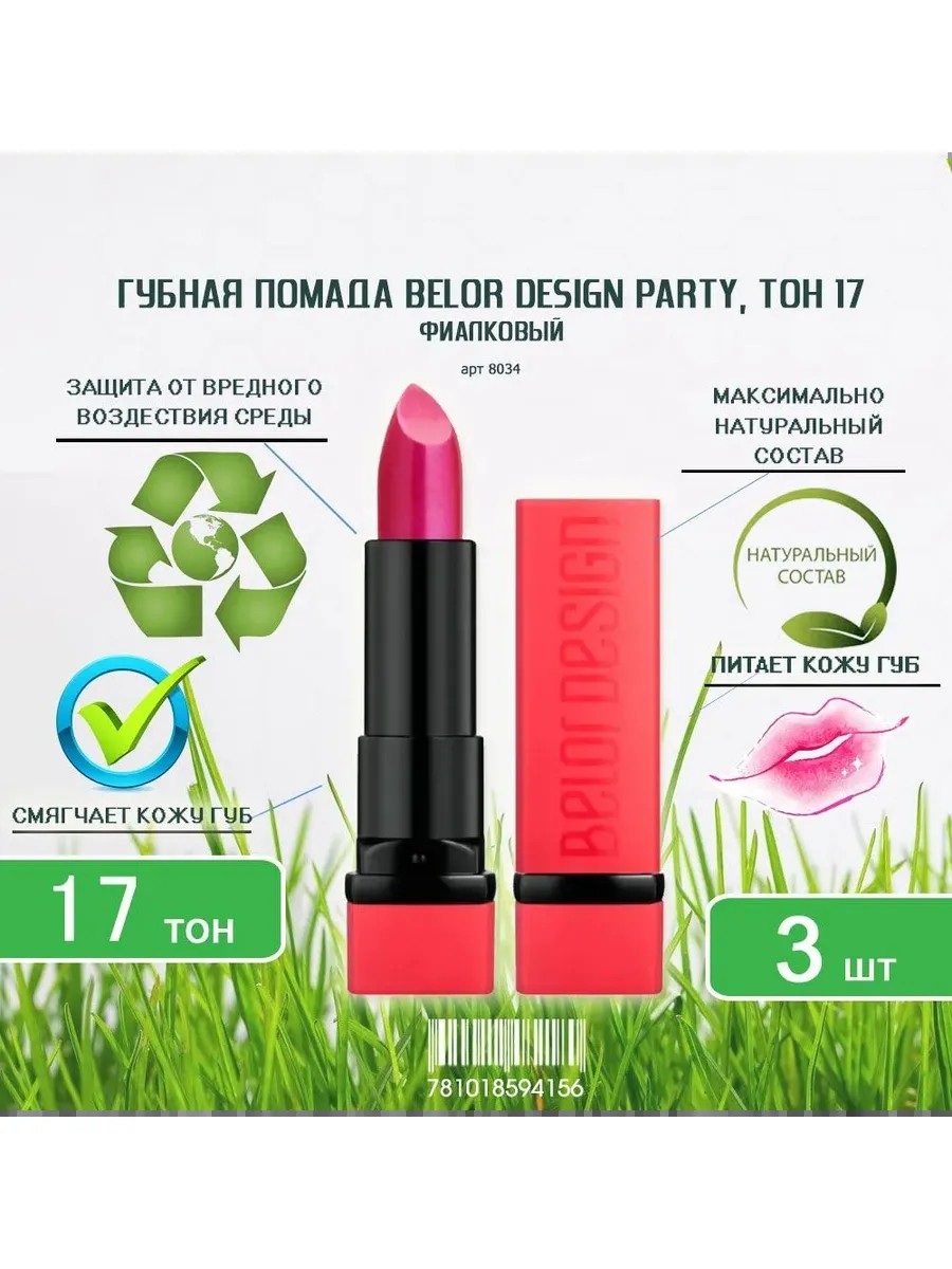 Package ContentsBelor Design PARTY lipstick, tone 17 violet x 3 pcs.