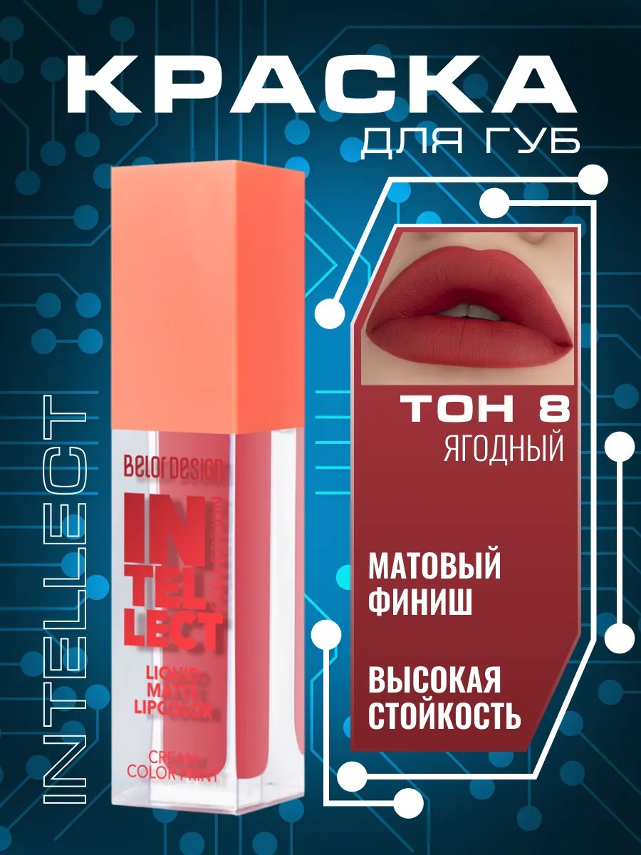 BELOR DESIGN Помада для губ матовая жидкая Intellect, т. 8
