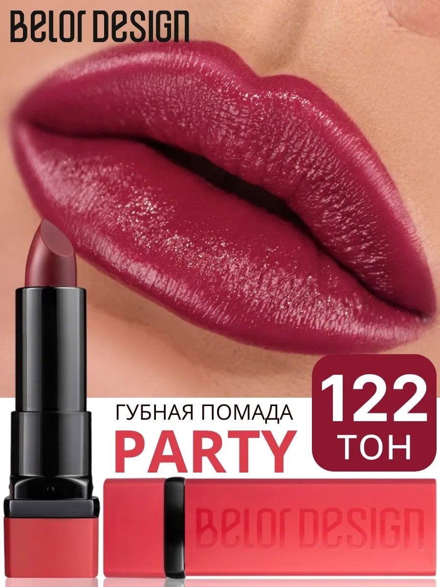 BELOR DESIGN Помада для губ PARTY увлажняющая тон 122 насыщенная слива