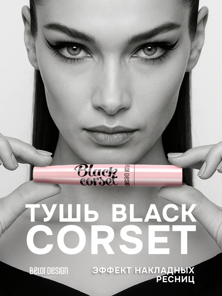 Тушь для ресниц Black Corset от Белорусского производителя Белор Дизайн создаст эффект накладных ресниц. Моделирующая щёточка А-силуэта подарит вашим ресницам выразительный изгиб и длину не осыпаясь в течение дня. Удлиняющая формула с тонкой подкручивающей кисточкой дополнит макияж, делая взгляд более открытым и завораживающим.
