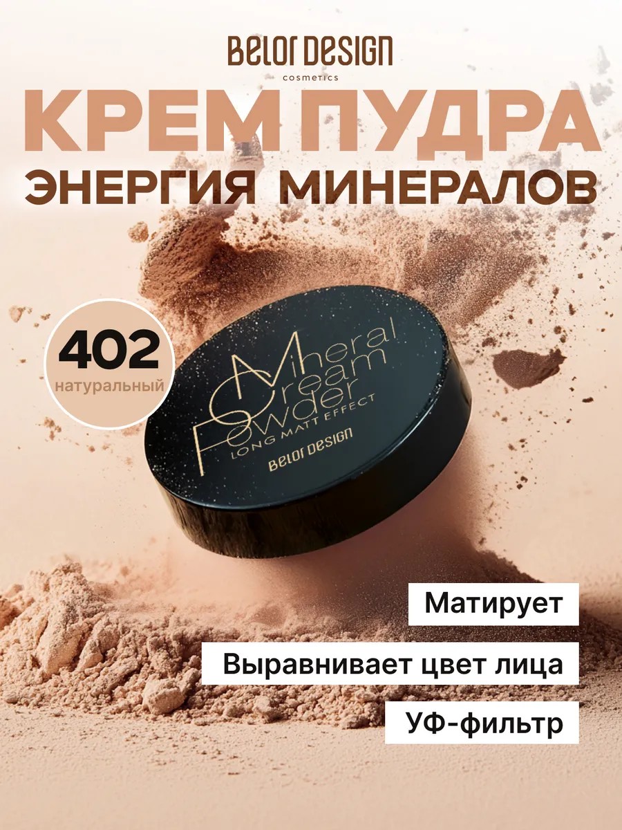 Бархатная пудра для лица ЭНЕРГИЯ МИНЕРАЛОВ цвет Натуральный от белорусского производителя Белор Дизайн станет незаменимым средством в арсенале девушек, стремящихся к красоте и ухоженному виду. Декоративный продукт прекрасно подходит для подростков и помогает замаскировать следы на проблемной коже. Кремовая текстура идеально выравнивает тон лица, скрывая пигментные пятна и прыщи.