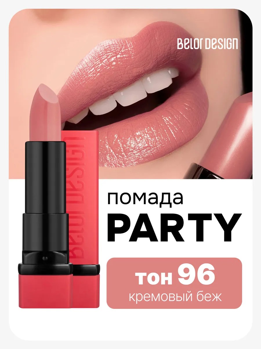 Губная помада Party тон 96 Кремовый беж от белорусского производителя Белор Дизайн станет незаменимым средством для макияжа. Стойкая, ухаживающая и увлажняющая формула обеспечивает идеальную защиту и уход за губами в течении всего дня. Кремовая текстура создаёт плотное покрытие, которое смягчает и питает кожу губ.