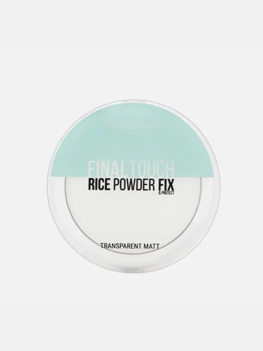 Пудра-фиксатор Final touch - финальный штрих для безупречного образа. Рисовая пудра с естественным матовым финишем освежает кожу и обеспечивает стойкую фиксацию макияжа на целый день. Тонким прозрачным покрытием пудра-фиксатор абсорбирует излишний блеск, оптически разглаживает микрорельеф, адаптируясь ко всем оттенкам кожи. Рисовая пудра походит для кожи любого типа: на сухой коже рисовая пудра поможет ей не терять необходимую влагу, на жирной коже создаст матовый эффект, а на проблемной окажет противовоспалительное воздействие. Несмотря на сильные матирующие свойства и рисовый состав, текстура пудры не ощущается на лице и не сушит кожу. Продукт можно использовать как финишную пудру, в качестве базы под макияж, так и самостоятельно, освежая и создавая защитный барьер на чистой коже. Представлена в универсальном оттенке.