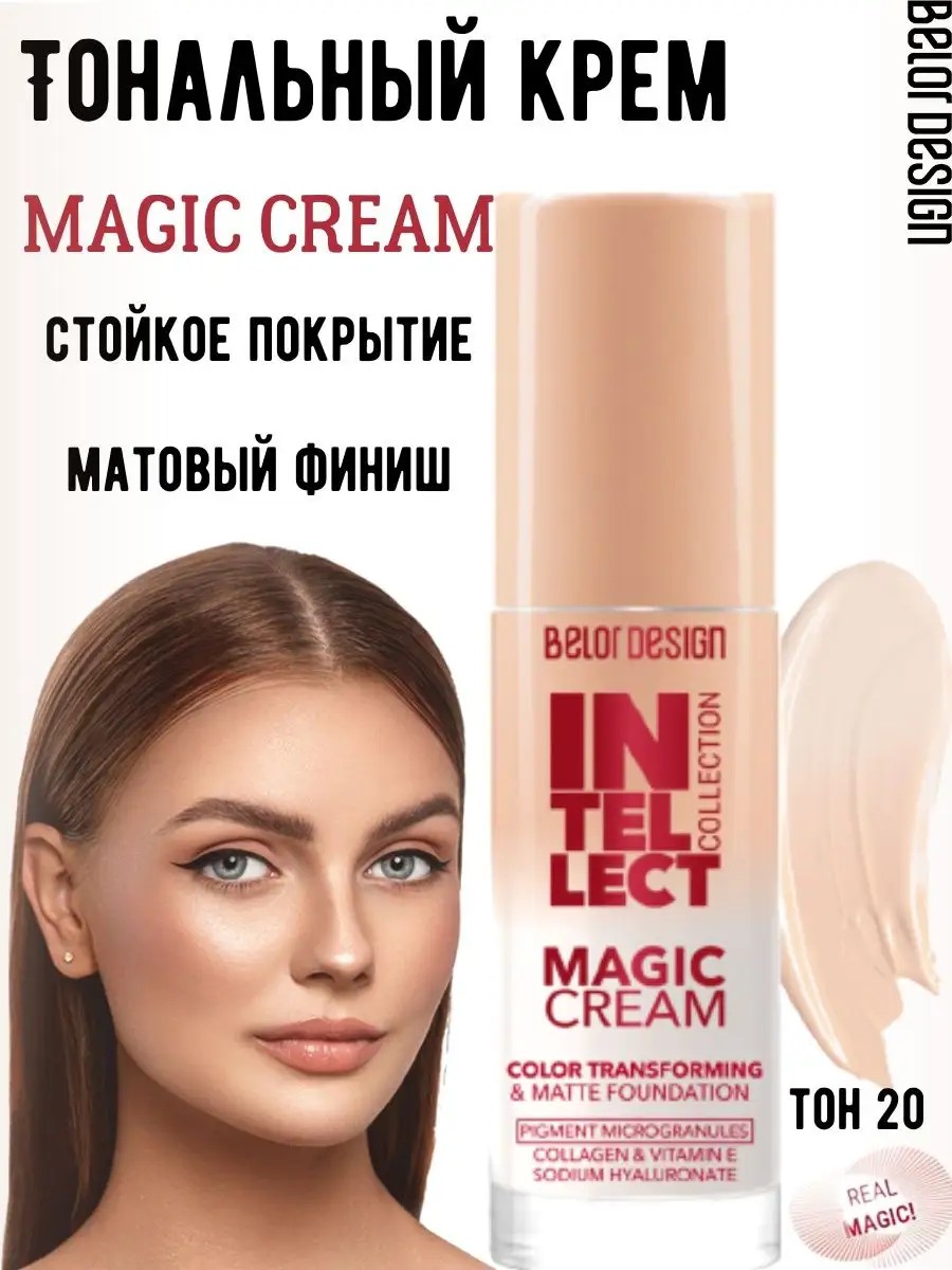Magic Cream foundation from the Belarusian decorative cosmetics brand Belor Design is the quintessential foundation and skin care product, transforming imperfections while providing prolonged hydration and improving skin texture. True magic happens when you use the foundation: upon contact with the skin, encapsulated pigments are activated, transforming the cream into a foundation. The microgranular formula precisely adapts the foundation to your natural skin tone, creating a long-lasting, even coverage with a matte finish. With buildable coverage from medium to full, the foundation maintains the natural breathability of the skin's surface. The revolutionary Magic Cream formula, based on effective skincare formulas, includes two essential ingredients: Collagen and Sodium Hyaluronate. Sodium Hyaluronate has a lower molecular weight, allowing it to penetrate the skin more effectively and, like hyaluronic acid, provides a cumulative effect with continued use – with each application, the skin becomes less and less dehydrated. This way, you can create a perfect look while also taking care of your skin. Recommendation: To ensure the pigments best adapt to your skin tone, apply the cream with your fingertips first and blend as usual.