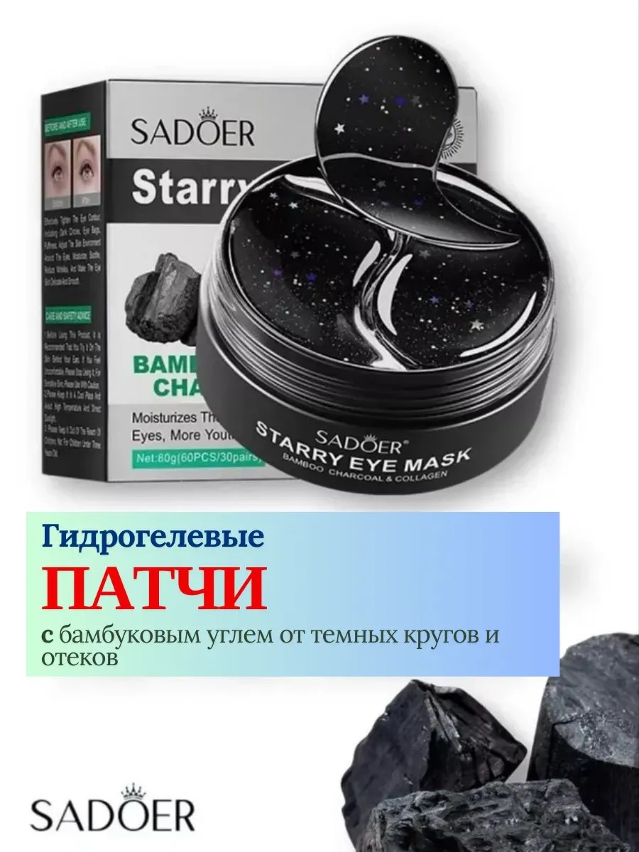 | Полное наименование товара | Патчи для глаз SADOER 60 шт | Гидрогелевые, с коллагеном и углем, от отеков и морщин |
