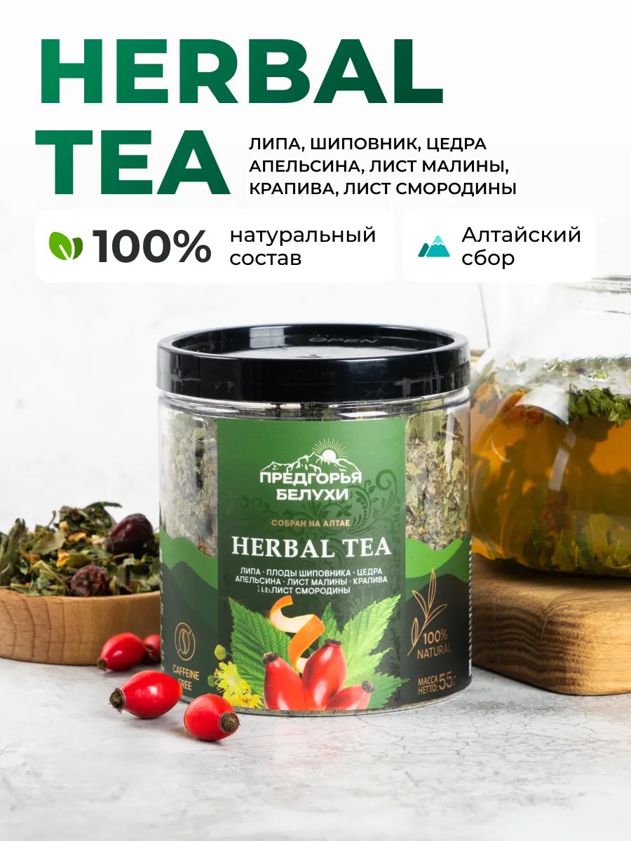 Предгорья Белухи Чай травяной с цедрой апельсина, малиной, крапивой, 55 г
