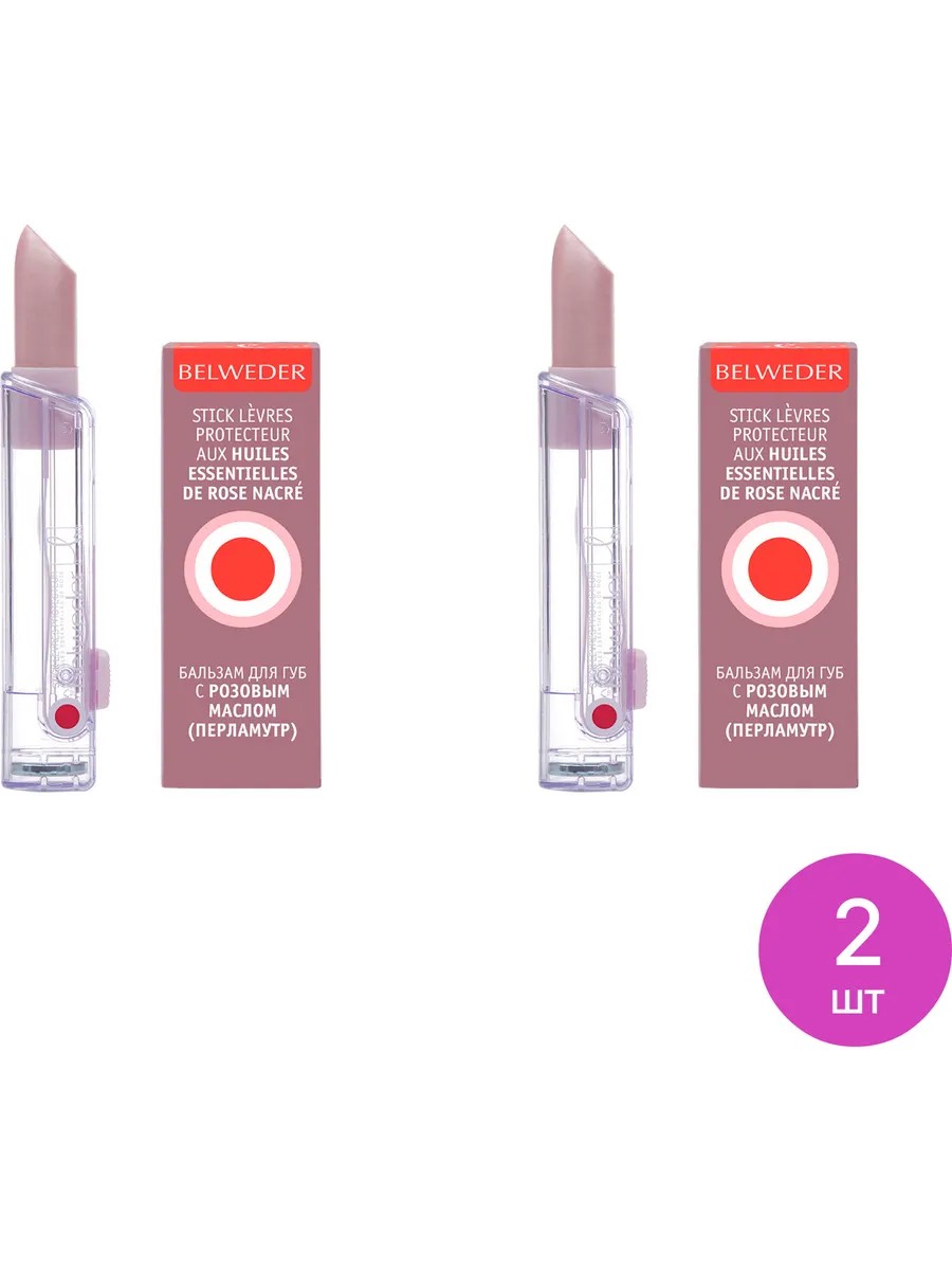 BELWEDER Бальзам для губ перламутр с розовым маслом 4г, 2 шт