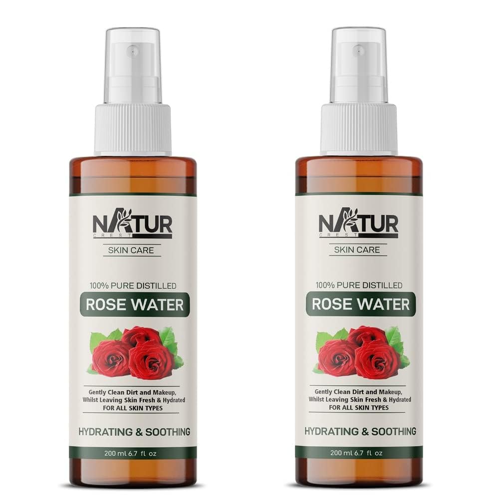 Convenient Pack of 2: Each bottle contains 200 ml of rose water—perfect for home and travel use. Suitable for All Skin Types: Light and easy to apply, making it great for everyday personal care. Daily Skincare Essential: Helps refresh and hydrate the skin's surface without harsh additives. Versatile Use: Ideal as a gentle face mist, toner, or part of your daily cleansing routine. Pure Refreshing: Crafted from natural rose extract to deliver a clean and refreshing skincare experience.