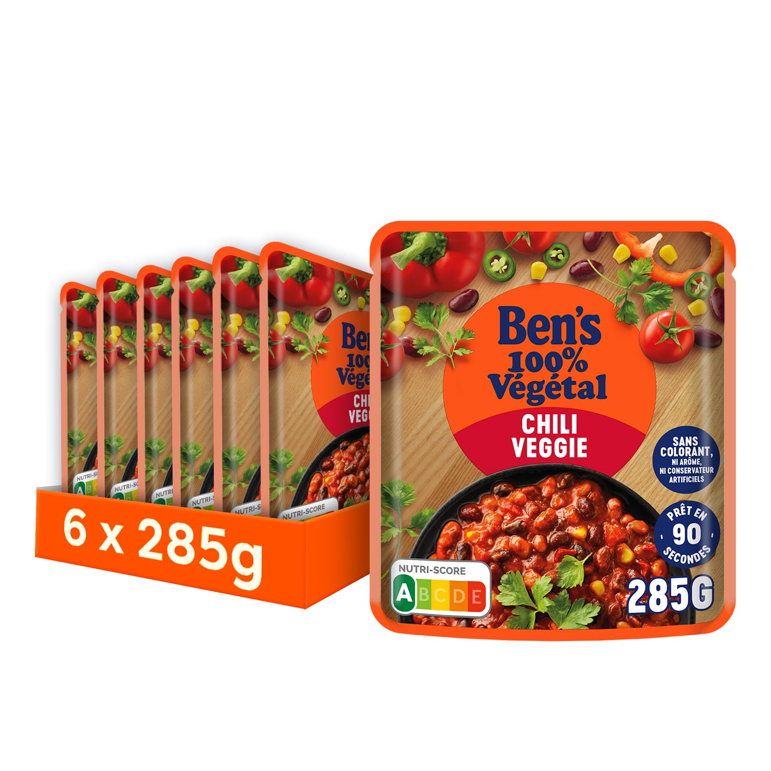 BEN'S ORIGINAL's™ offers a 100 plant-based meal combining three varieties of beans in a delicious tomato-based sauce, lightly spiced with green and red chilies. Quick and easy to prepare: in just 90 seconds in a pan or microwave. With this meal, which contains no artificial colors, flavors, or preservatives, you can create delicious and healthy meals. This recipe is a source of fiber and protein and is the perfect accompaniment to rice. Our 100 plant-based express meals are available in three different flavors. Nutriscore A INGREDIENTS Ingredients: tomatoes (18 ), red beans, (13 ), onion, red pepper (10 ), sweet corn (10 ), white beans (9.0 ), black beans (6.9 ), garlic, tomato puree 3.8 sunflower oil, lemon juice, sugar, yeast extract, salt, basil, cumin, parsley, natural flavoring, green chili (0.1 ), red chili, oregano, black pepper, coloring (paprika oleoresin), smoke flavoringNutriscore A. 100 plant-based recipe. Quick dish: 90 seconds in the microwave or pan. Delicious, foolproof, and quick to prepare. Perfect accompaniment to a rice dish. Recipe without artificial colors, preservatives, or flavors. BEN'S ORIGINAL's™ vous propose un plat préparé 100 végétal réunissant trois variétés de haricots dans une sauce gourmande à base de tomates, légèrement épicée avec des piments verts et rouges. Pratique et rapide à préparer : en seulement 90 secondes à la poêle ou au micro-onde. Avec ce plat cuisiné, sans colorant, ni arôme, ni conservateur artificiels, vous pouvez créer des repas délicieux et sains à la fois. Cette recette est sources de fibres et protéines et accompagnera parfaitement du riz. Nos plats 100 végétaux express sont disponibles dans trois variétés de saveurs différentes. Nutriscore A INGRÉDIENTS Ingredients: tomates (18 ), haricots rouge, (13 ), oignon, poivron rouge (10 ), mais doux (10 ), haricots blancs (9.0 ), haricots noirs (6.9 ), ail, purée de tomates 3,8 huile de tournesol, jus de citron, sucre, extrait de levure,sel, basilic, cumin, persil, arôme naturel, piment vert (0.1 ), piment rouge, origan, poivre noir, colorant (oléorésine de paprika), arome de fuméNutriscore A. Recette 100 végétale. Plat express: 90 secondes au micro-onde ou à la poêle. Savoureux, inratable et rapide à préparer. Accompagnement idéal pour un plat de riz. Recette sans colorant, conservateur ni arôme artificiels.