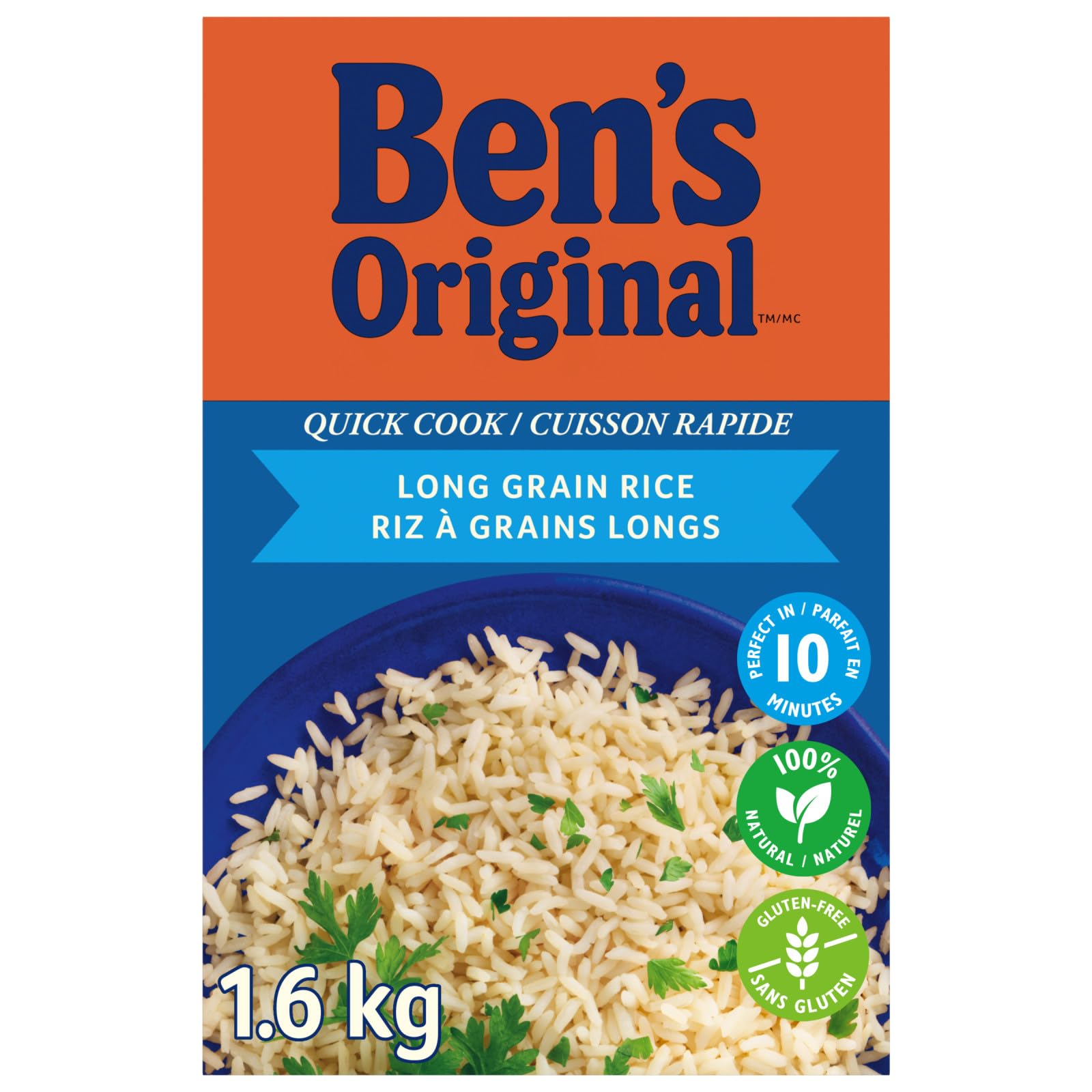 BEN'S ORIGINAL Quick Cook Long Grain White Rice is the perfect combination of classic flavour and firm texture sure to please the palate. This classic long grain rice cooks perfectly every time and works well on its own as a delicious side dish or paired with your favourite protein and vegetables. Stock up your pantry to discover endless culinary possibilities perfect for adding some variety to weeknight rice meals or your next family gathering. The preparation couldn't be simpler. Place your rice in a saucepan and cook it for 12 minutes. Once done, simply fluff your freshly cooked rice with a fork and serve your family a yummy, nutritious meal. Spice things up at dinner by preparing this rice with roasted chicken and a veggie medley of peppers, zucchini, and garlic. You can feel confident knowing this long grain parboiled rice is 100% natural. BEN'S ORIGINAL brand is dedicated to creating meals and experiences that offer everyone a seat at the table.