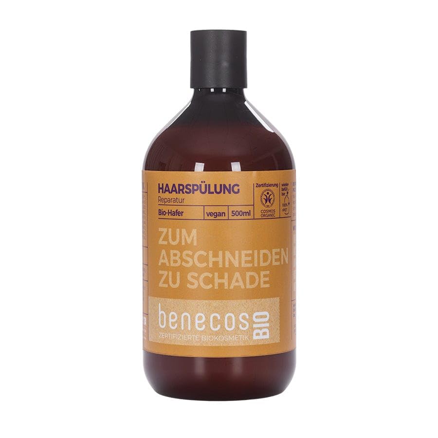 Repair instead of cutting off!This is exactly what the repair flushing for damaged, stressed hair is ideally suited.With a protective organic hayer excerpt, a nourishing organic jojoba oil and home bio-apple juice, she gives your hair tangible suppleness, a nice shine, makes it easier to comb and give it a healthy look on top.Too bad for cutting off, right?!Dermatologically tested.The stylish benecosbio bottles are made of recycled PET and are particularly thin.They can be disposed of in the yellow sack - please separate the lid and vessel and supply the recycling circuit separately.The tubes contain recycled material (PCR).Please also separate the top of the lower part and supply the recycling circuit separately.Cosmos Organic.Vegan.Massage into the damp hair and let it work briefly.Then rinse thoroughly.Repair flushing with bio-harbor, organic Jojoba oil and organic apple juice.Gives hair smoothness and a healthy look.Dermatologically tested.The stylish benecosbio bottles are made of recycled PET and are particularly thin.They can be disposed of in the yellow sack - please separate the lid and vessel and supply the recycling circuit separately.The tubes contain recycled material (PCR).Please also separate the top of the lower part and supply the recycling circuit separately.Repair instead of cutting off!This is exactly what the repair flushing for damaged, stressed hair is ideally suited.With a protective organic hayer excerpt, a nourishing organic jojoba oil and home bio-apple juice, she gives your hair tangible suppleness, a nice shine, makes it easier to comb and give it a healthy look on top.Too bad for cutting off, right?!Dermatologically tested. Reparieren statt Abschneiden! Genau dafür ist die Reparatur-Spülung für geschädigtes, strapaziertes Haar bestens geeignet. Mit schützendem Bio-Haferauszug, pflegendem Bio-Jojobaöl und heimischem Bio-Apfelsaft schenkt sie deinem Haar fühlbare Geschmeidigkeit, einen schönen Glanz, macht es leichter kämmbar und verleiht ihm on top ein gesundes Aussehen. Zum Abschneiden doch viel zu schade, oder?! Dermatologisch getestet. Die stylischen benecosBIO Flaschen bestehen aus recyceltem PET und sind besonders dünnwandig. Sie lassen sich im Gelben Sack entsorgen – bitte dafür Deckel und Gefäß voneinander trennen und separat dem Wertstoffkreislauf zuführen. Die Tuben enthalten recyceltes Material (PCR). Bitte auch hier Oberteil vom Unterteil trennen und separat dem Wertstoffkreislauf zuführen.COSMOS Organic. Vegan. Ins feuchte Haar einmassieren und kurz einwirken lassen. Anschließend gründlich ausspülen. Reparatur-Spülung mit Bio-Hafer, Bio-Jojobaöl und Bio-Apfelsaft. Schenkt dem Haar Geschmeidigkeit und ein gesundes Aussehen. Dermatologisch getestet. Die stylischen benecosBIO Flaschen bestehen aus recyceltem PET und sind besonders dünnwandig. Sie lassen sich im Gelben Sack entsorgen – bitte dafür Deckel und Gefäß voneinander trennen und separat dem Wertstoffkreislauf zuführen. Die Tuben enthalten recyceltes Material (PCR). Bitte auch hier Oberteil vom Unterteil trennen und separat dem Wertstoffkreislauf zuführen. Reparieren statt Abschneiden! Genau dafür ist die Reparatur-Spülung für geschädigtes, strapaziertes Haar bestens geeignet. Mit schützendem Bio-Haferauszug, pflegendem Bio-Jojobaöl und heimischem Bio-Apfelsaft schenkt sie deinem Haar fühlbare Geschmeidigkeit, einen schönen Glanz, macht es leichter kämmbar und verleiht ihm on top ein gesundes Aussehen. Zum Abschneiden doch viel zu schade, oder?! Dermatologisch getestet.benecosBIO - Haarspülung Normales Haar BIO-Hafer - ZUM ABSCHNEIDEN VIEL ZU SCHADE - vegan - recyceltes Plastik
