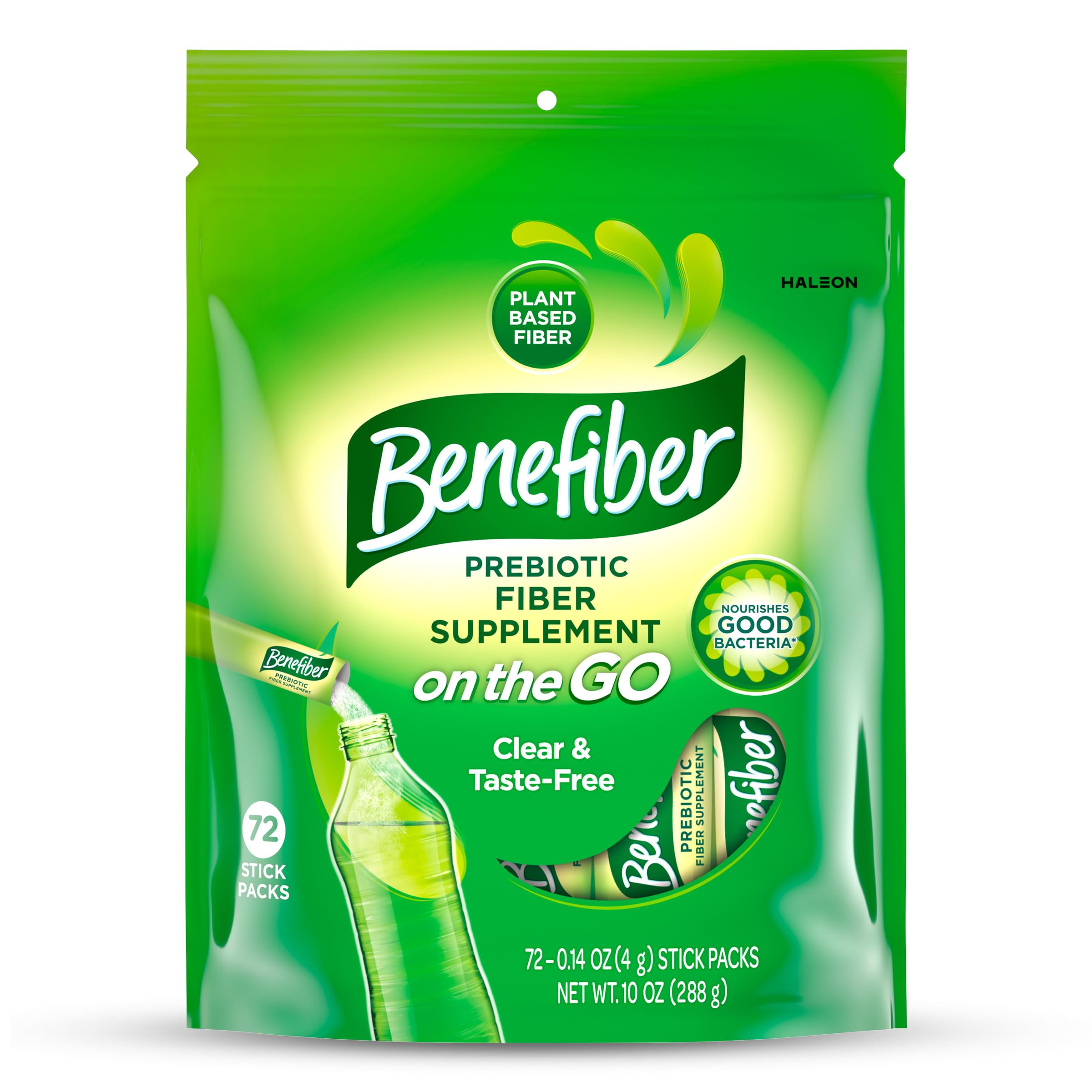Mix the contents of a prebiotic powder stick into a non-carbonated beverage or soft food and stir well until fully dissolved, for age 12 years and older. One pack twice a day for digestive health benefits for the benefit of helping you feel fuller longer take 2 packs twice daily. Benefiber prebiotic supplement made with wheat dextrin (3). Prebiotic fiber powder that contains no sugar, gluten or artificial flavors. Unflavored fiber powder that dissolves clear and completely in your favorite foods and beverages (2). Daily fiber powder supplement that nourishes the growth of good bacteria that exist naturally in your gut to help you maintain good digestive health (1). One package of 72 unflavored powder stick packs of Benefiber On the Go Prebiotic Fiber Supplement Powder for Digestive Health, Daily Fiber Powder.