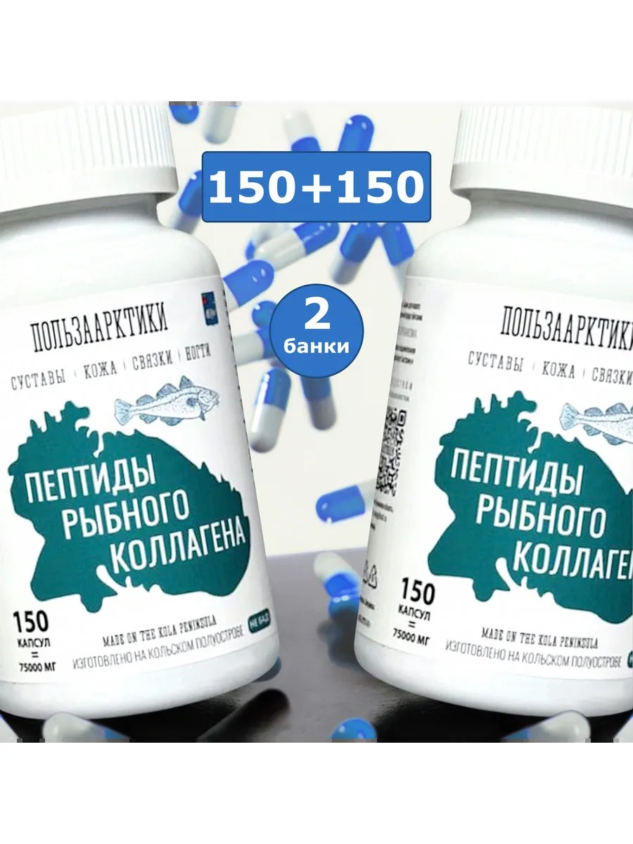 пользаарктики Пептиды рыбного коллагена 2 банки по 150 капсул