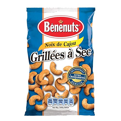 Our quality commitments - extra crunchy Our 3 commitments Carefully selected, simple and delicious ingredients. Cashew nuts delicately baked with a touch of seasoning, without added oil to make them extra crunchy. Packaging in a protective atmosphere for unadulterated enjoyment.Dry Roasted Cashews 90g. BENENUTS. Peanuts and others. Snacks, Chips. Savory groceries. Nos engagements qualité - extra croquantes Nos 3 engagements Des ingrédients soigneusement sélectionnés, simples et savoureux. Des noix de cajou délicatement cuites au four avec une pointe d'assaisonnement, sans ajout d'huile pour les rendre extra croquantes. Un emballage conditionné sous atmosphère protectrice pour un plaisir intact.Noix De Cajou Grillees A Sec 90G. BENENUTS. Cacahuètes et autres. Produits apéritifs, Chips. Epicerie salée.