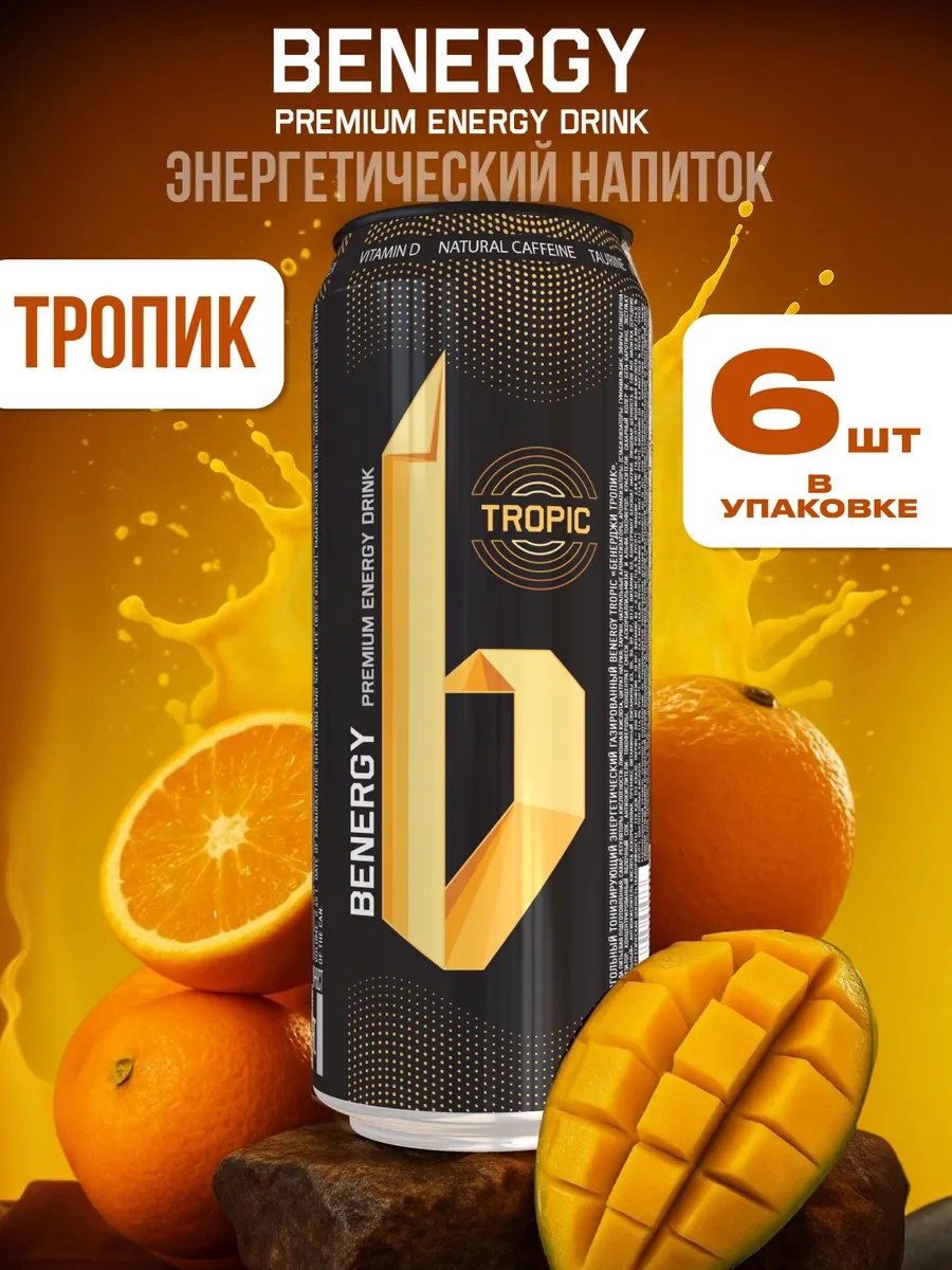 Benergy Tropic - безалкогольный тонизирующий энергетический газированный напиток c удивительным тропическим вкусом. Содержит витамин D в составе,что способствует обеспечению эффективного заряда энергии!