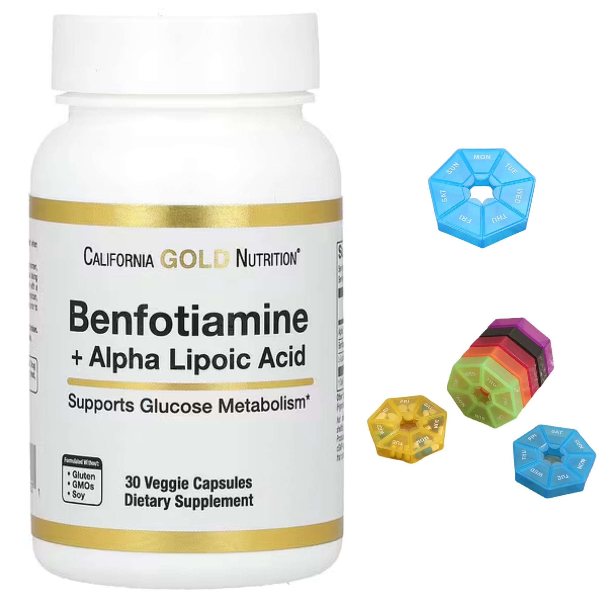 Benfotiamine + Alpha Lipoic Acid Compatible With California Gold Nutrition 30 Veggie Capsules + Bonus Pill Organizer Weekly Pill Organizer Mini