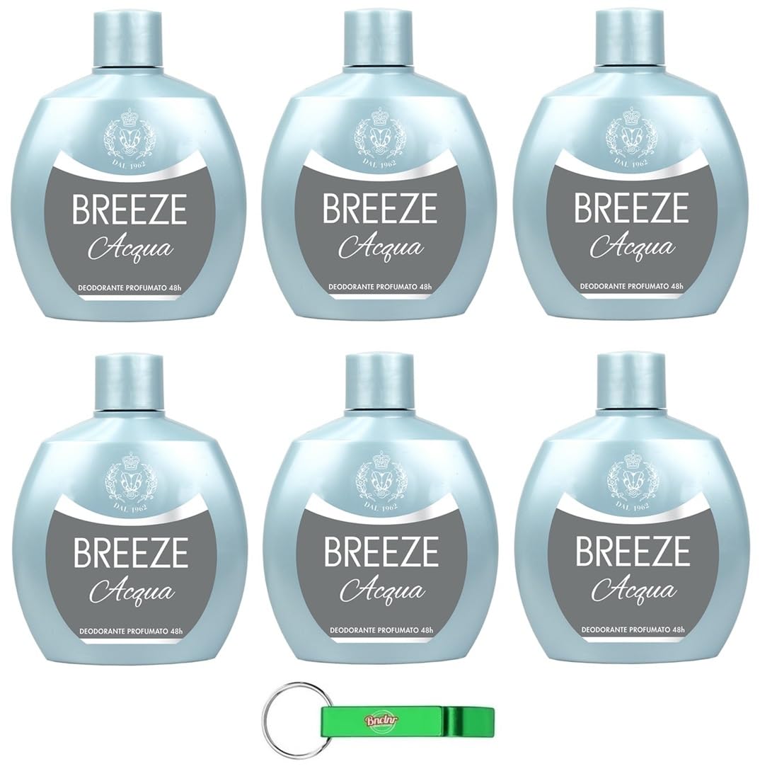 Beni Culinari Breeze Acqua Squeeze 6-Pack of Gas-Free and Aluminum-Free Deodorants 48-Hour Fragrance 100ml + Beni Culinari Keyring