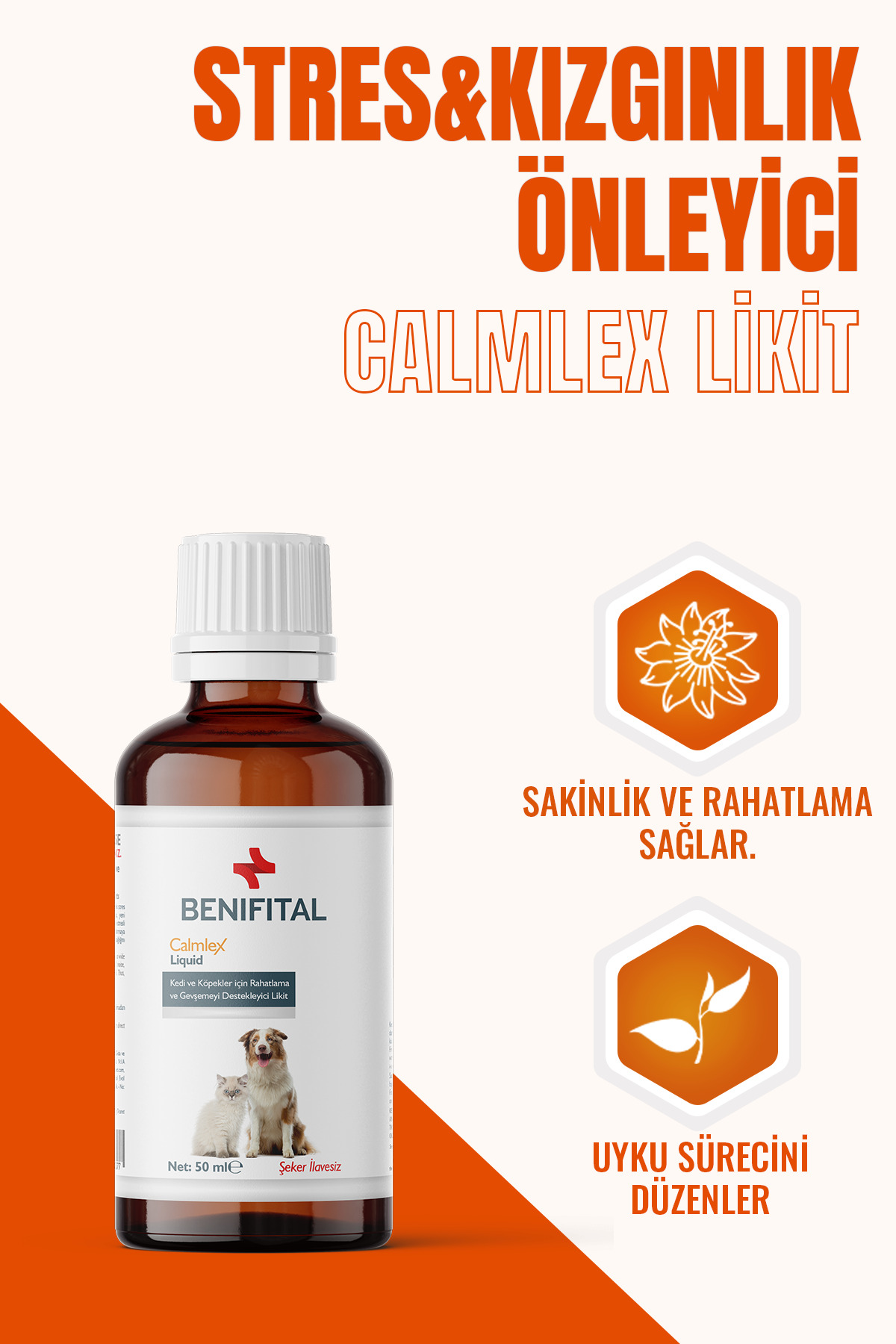 Patili dostalarimizin huzur ve dinginligini saglamak için özel olarak gelistirilen Calmlex, kedi ve köpeklerinizin stresli anlarinda sakin kalmalarina destek olur. Tamamen dogal ve güvenilir içeriklerle formüle edilen bu likit, onlarin daha rahat ve mutlu olmalarina yardimci olur.