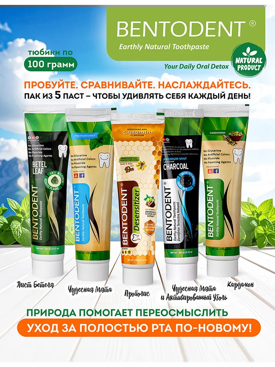 BENTODENT Аюрведическая паста без фтора натуральная набор 5 шт. 100 г.