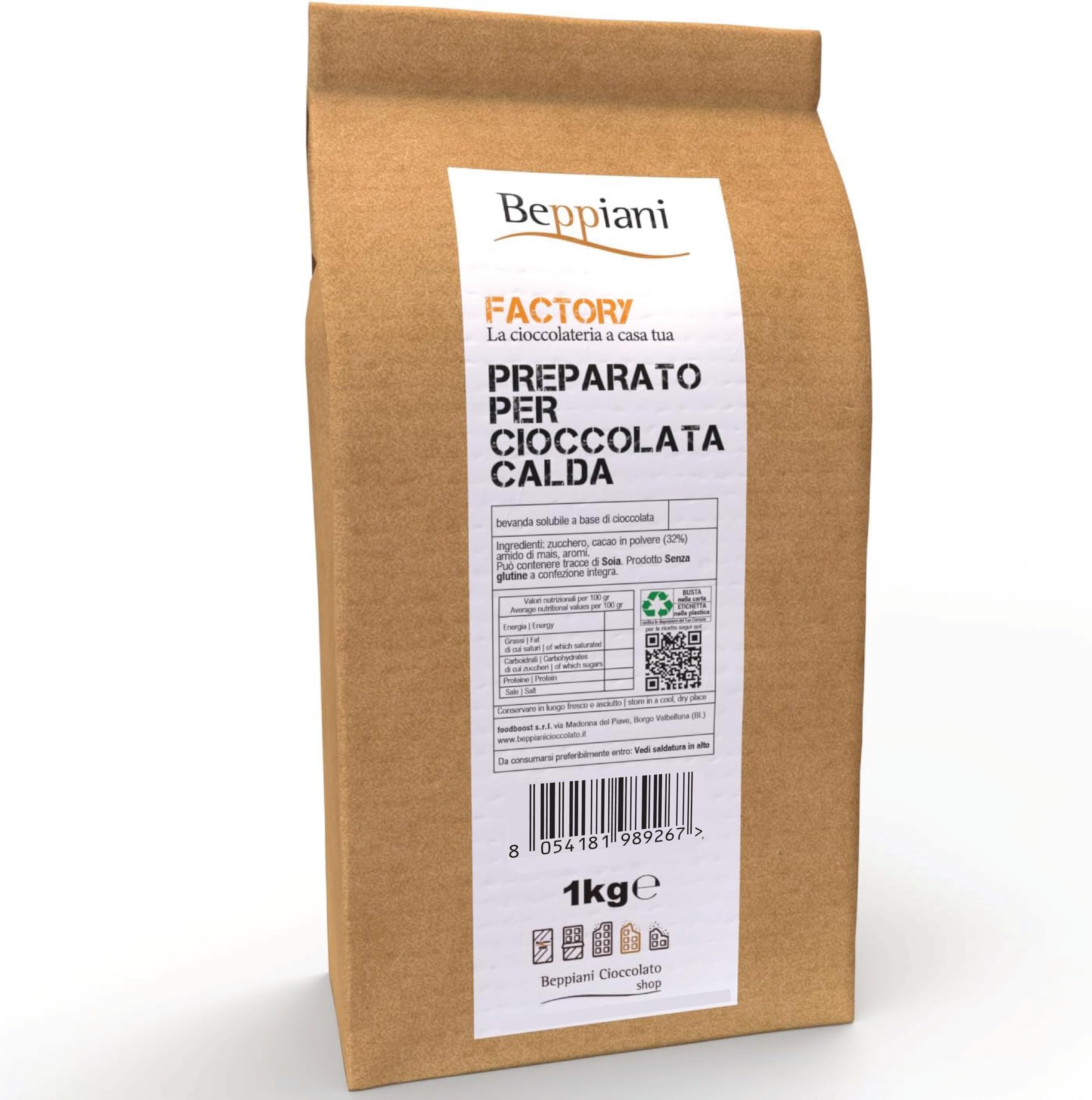 Beppiani hot chocolate is a must for true chocolate fans, for those who value excellence in the quality of the raw materials and a cup of steaming chocolate. A balanced, thick, creamy formula in the right places and with pleasant sweet notes that do not cover, but enhance the aroma of Beppiani bitter cao powder. All packaged with an elegant, classic Doypack envelope, which is perfect for gift packaging, Christmas gift baskets, advent calendars or for your boutique products. Whether you have a cold winter evening with a hot water bottle or want to end an evening with your partner perfectly, the hot Beppiani chocolate is the right choice. INGREDIENTS Ingredients: sugar, cocoa powder (32 ), corn starch, flavourings. May contain soy traces. Gluten-free, in one package. INSTRUCTIONS FOR USE Preparation: the preparation of Beppiani hot chocolate is child's play: just add 100 120 ml of milk 25 g of Beppiani and mix them in a pan with the food to cook when ready, serve warm See moreBeppiani, 1 kg warme chocolade, bereid voor warme chocolade, komt overeen met 40 blikjes hete chocoladezakken, dicht en romig zoals bar, intens aroma, natuurlijke ingrediënten en glutenvrij Beppiani hete chocolade is een must voor echte chocoladefans, voor degenen die waarde hechten aan excellentie in de kwaliteit van de grondstoffen en een kopje dampende chocolade. Een uitgebalanceerde, dikke, romige formule op de juiste plaats en met aangename zoete noten die niet bedekken, maar het aroma van Beppiani-bittere caopoeder versterkt. Alles verpakt met een elegante, klassieke Doypack-envelop, die perfect is voor geschenkverpakkingen, kerstcadeaumanden, adventskalenders of voor je boetiekproducten. Of je nu een koude winteravond hebt met een warmwaterkruik of een avond met je partner perfect wilt beëindigen, de hete Beppiani-chocolade is de juiste keuze. INGREDIËNTEN Ingrediënten: suiker, cacaopoeder (32 ) maïszetmeel, aroma's. Kan sojasporen bevatten. Glutenvrij, in één verpakking. GEBRUIKSAANWIJZING Voorbereiding: de bereiding van de hete chocolade van Beppiani is kinderspel: voeg gewoon 100 120 ml melk 25 g Beppiani toe en meng ze in een pan met het eten om te koken als je klaar bent, warm serveren Meer bekijken