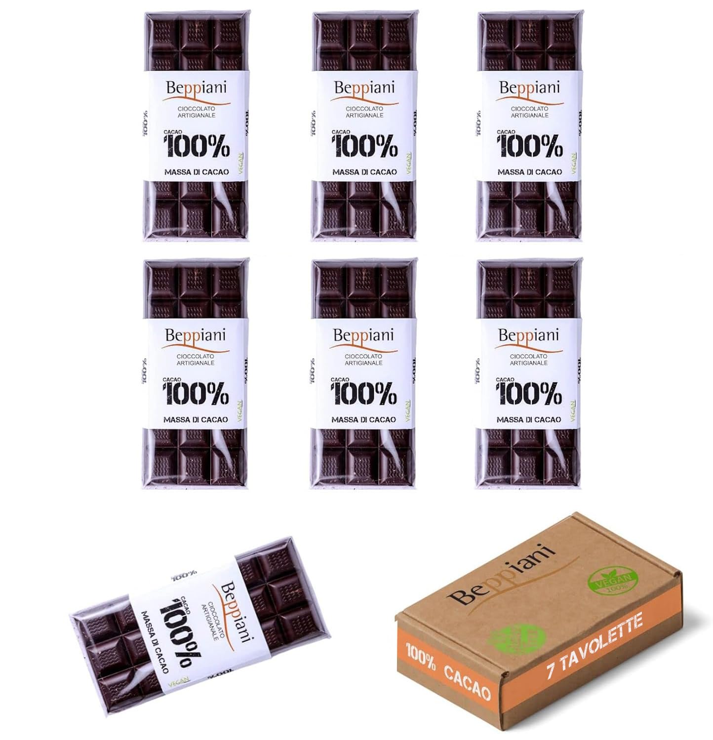 Beppiani 100 masse de cacao, chocolat artisanal, végétalien, sans sucre, riche en antioxydants, pour régimes équilibrés – Fabriqué en Italie set (7 Tav. Classique)