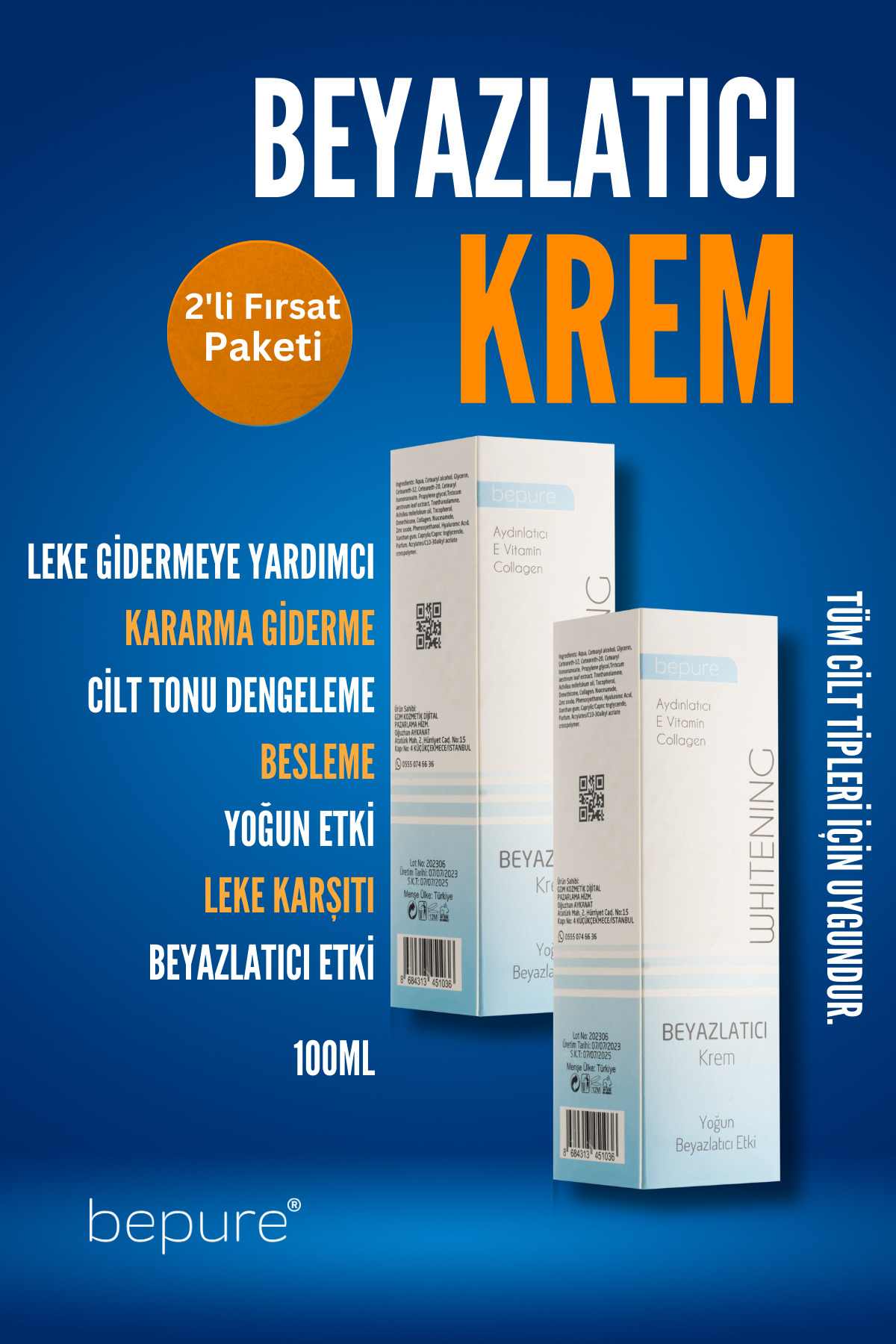 Bepure Whitening Cream Skin Whole Body and Genital Area Whitening and Blemish Cream 200ml (2x100ml)